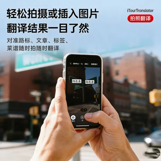 •拍照翻译:镜头对准就能即刻显示翻译字幕,无需手动点击拍照。对准菜单、路标、文件即可实时翻译,译文可生成图片保存,省去手动输入的麻烦。