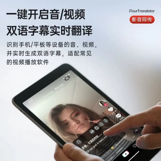 •影音同传:在看YouTube、TikTok、Zoom等应用内的视频或直播时,可开启悬浮窗字幕,实现双语同传字幕,让追剧、上网课更加轻松。