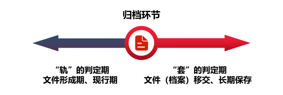 “轨”主要是指文件的运行状态,即针对文件运行流程的管理,在管理流程上实现数字连续性,涵盖文件生命周期整个运行流程。文件运行阶段中包含的所有业务活动都应属于“轨”的范围。