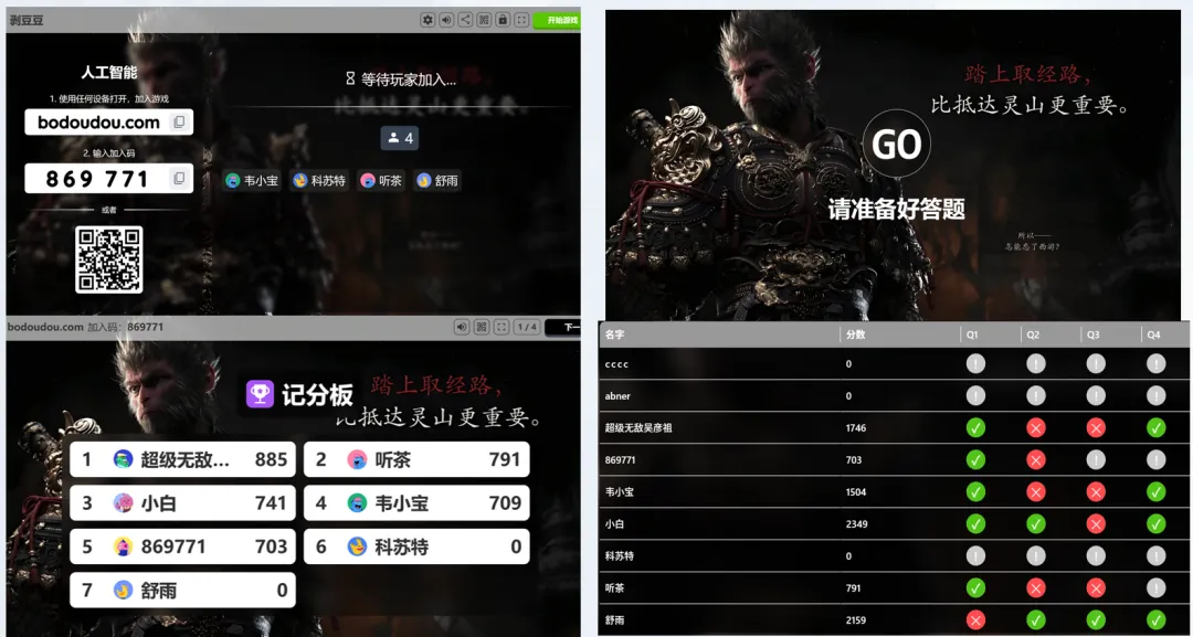 2️⃣ 一键开启,学生扫码即参与上课时,只需打开豆荚点击“开剥”。系统提供多种互动模式: