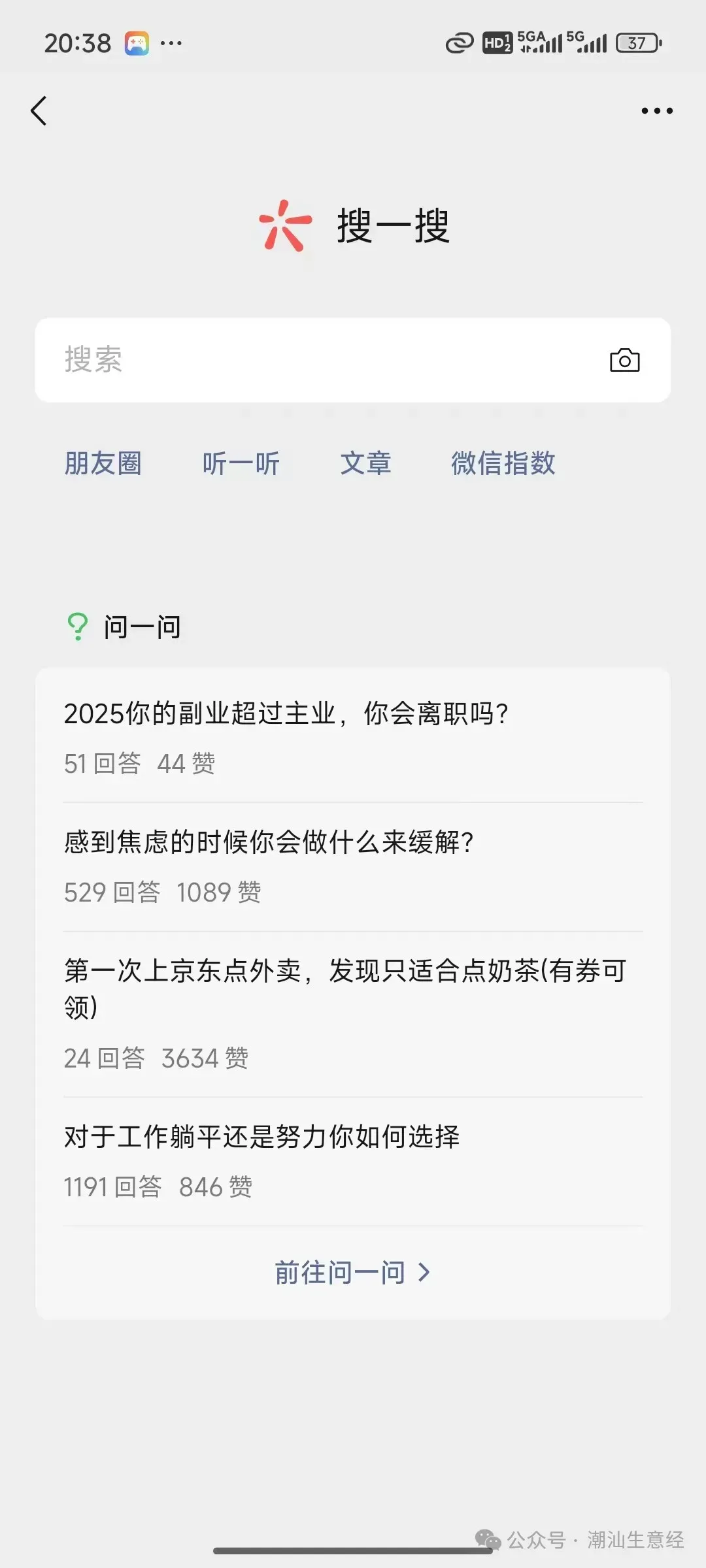 进入问一问方法也很简单,只需要从微信的搜一搜页面就可以进入。