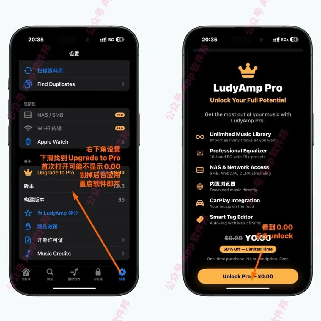 今天分享的是一款让我这种本地音乐收藏家狂喜的应用,挖到宝了!LudyAmp完全是为拥有自己音乐库的人打造的离线播放器,我试完直接卸了一堆流媒体。它几乎能播任何格式,我那些FLAC、DSD甚至老掉牙的WMA都能完美播放,Hi-Res输出到24-bit/192kHz,音质太爽了。连NAS也超方便,SMB和WebDAV一挂,整个曲库直接串流。最戳我的是它能在手机上直接改ID3标签,还能用MusicBrainz自动匹配,强迫症福音!内置浏览器可以扒网页音乐,均衡器有15种预设,CarPlay也是完整的。目前这款应用的高级完整版正在限免中,首次打开,可能不显示0.00,看下图步骤操作,手慢无。