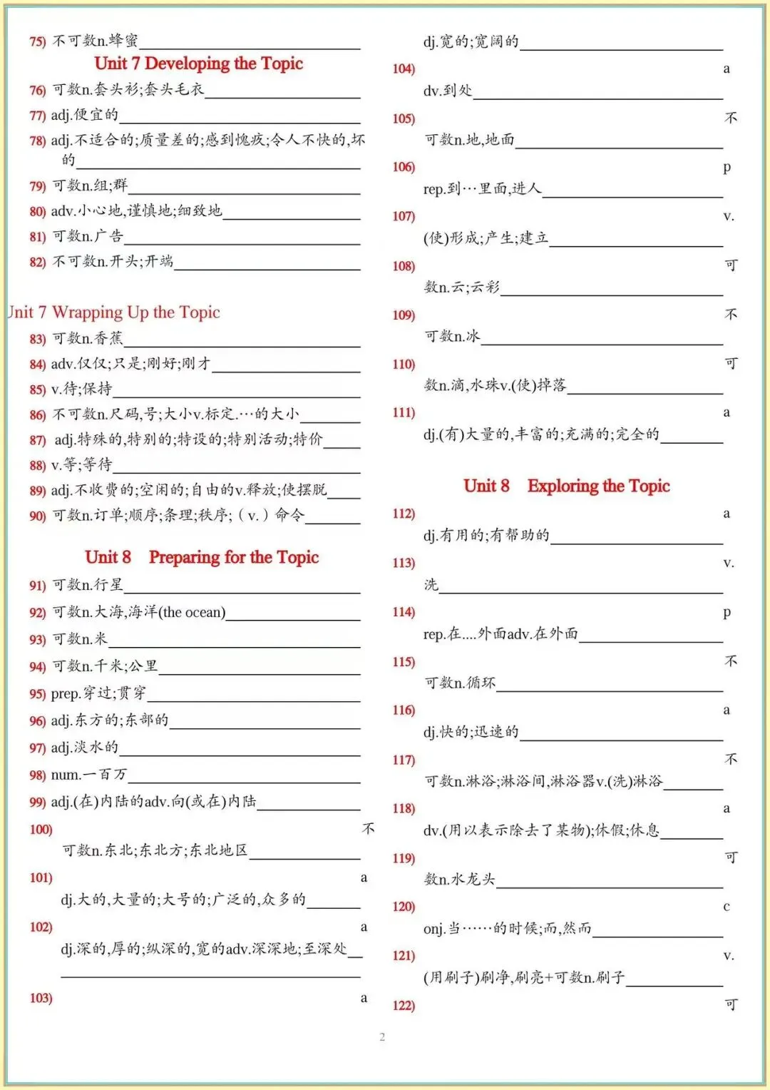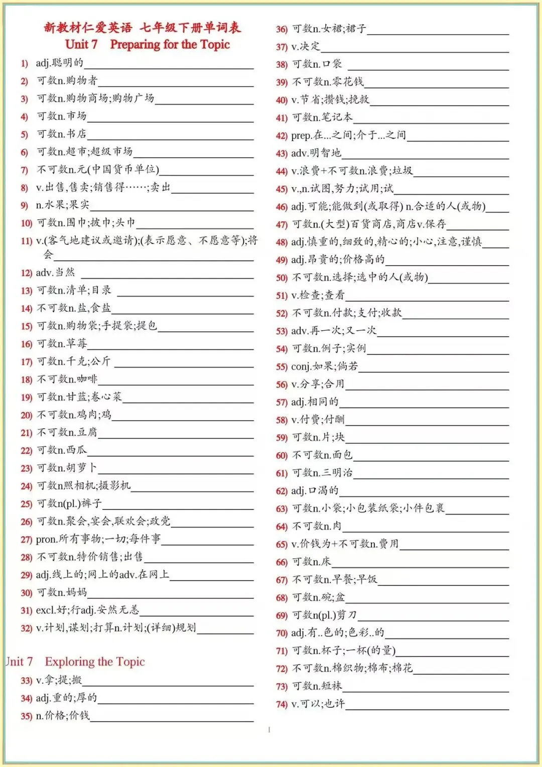 附仁爱版七下英语单词表+英文默写(完整电子版可打印)