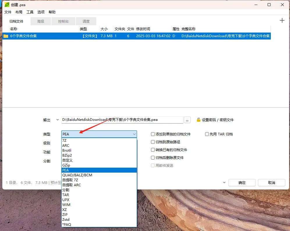 另外还有独家压缩格式pea,当然那只有PeaZip才能解压缩。