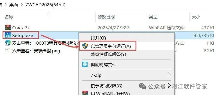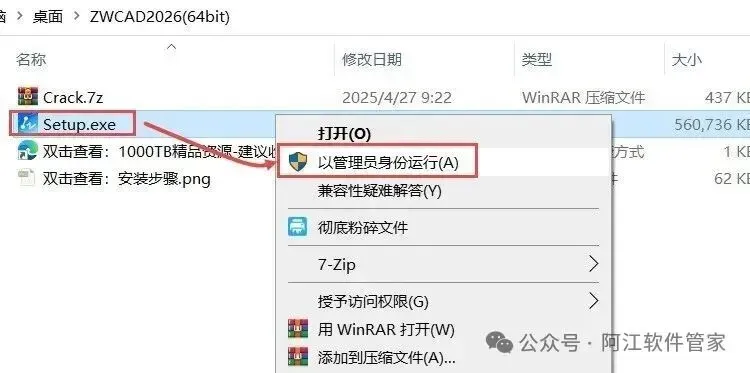 2.点击“Setup”文件夹,以“管理员身份运行”。