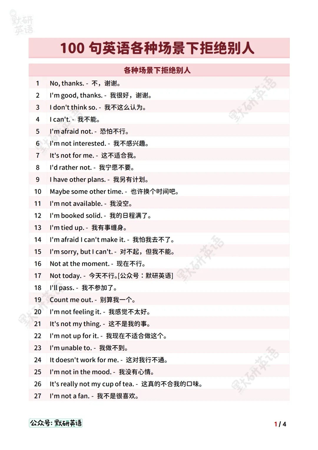 整理了 100 句超实用的英语拒绝表达,覆盖日常、社交、工作全场景!