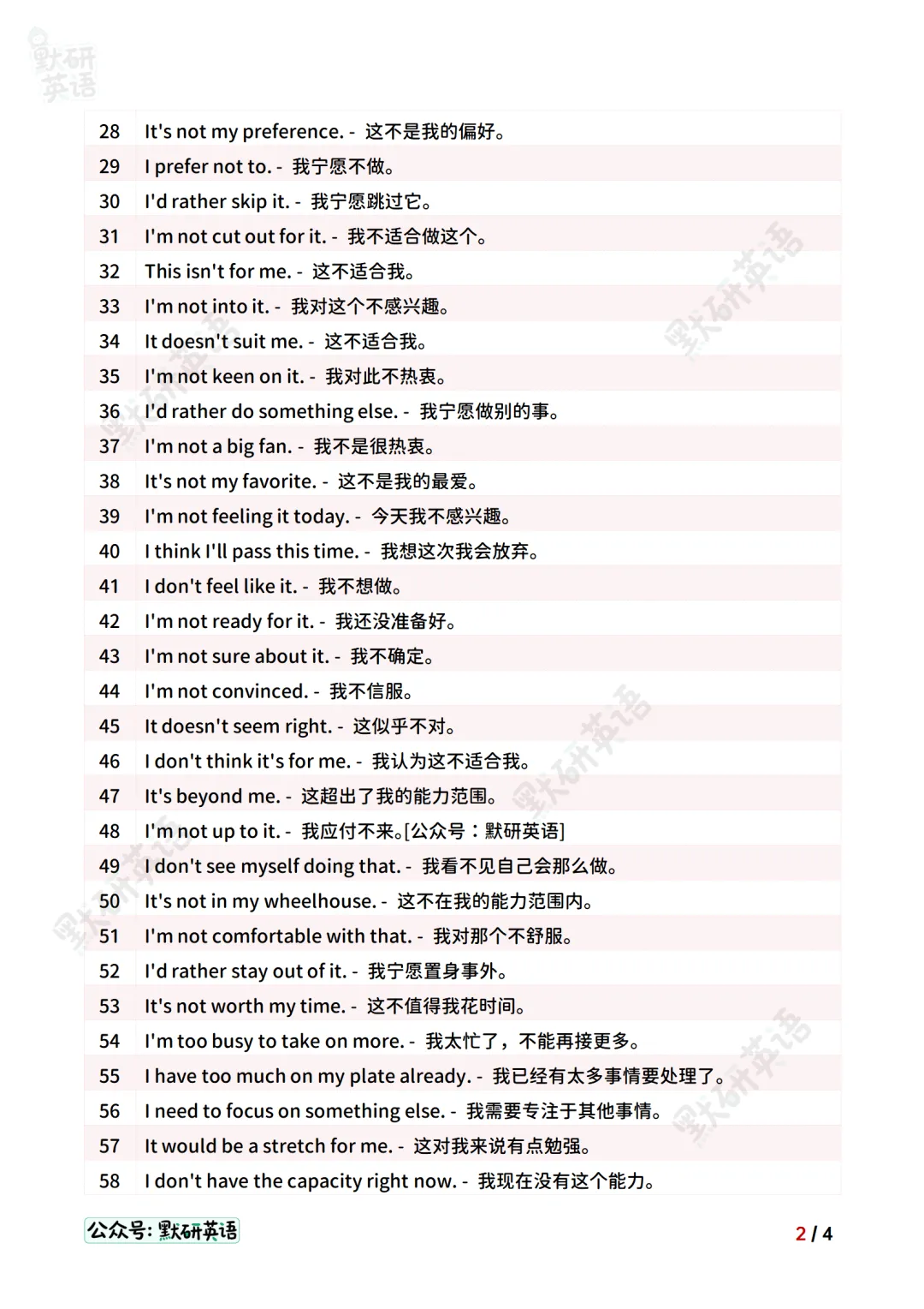I’d rather not. – 我宁愿不要。 -