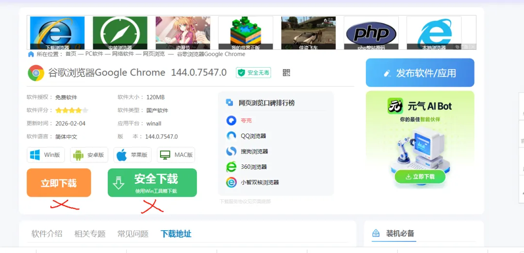 网站下载技巧:如何不下载带广告的垃圾软件