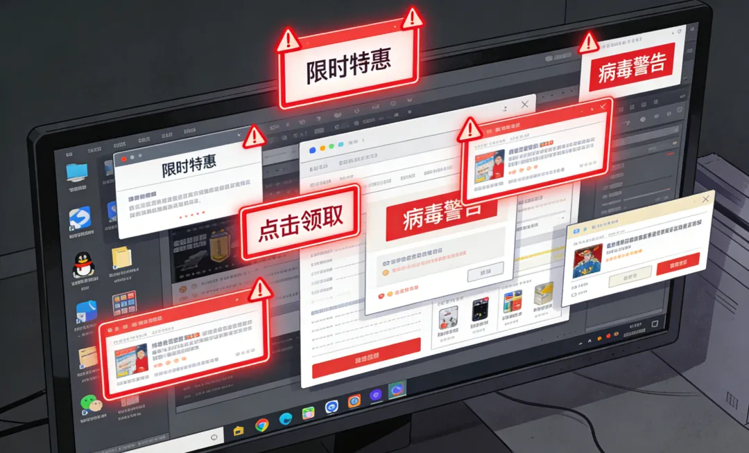 凡是一打开就弹窗、闪烁、诱导点击的,直接关掉,别犹豫。