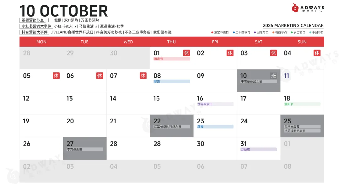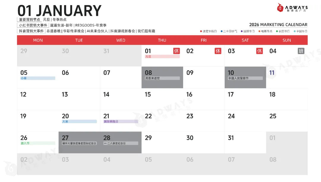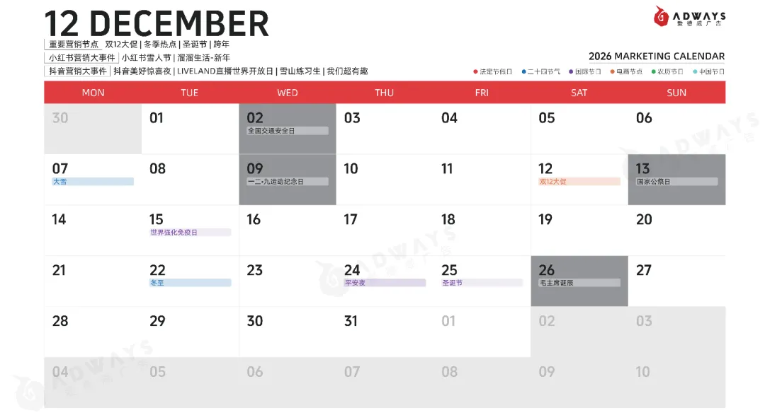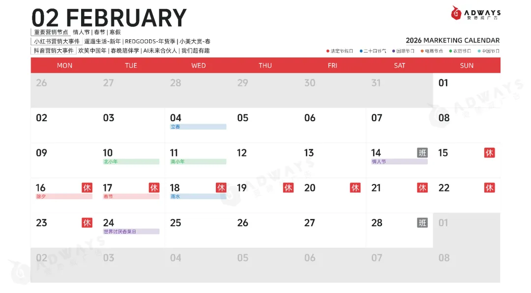 从春节到圣诞,从情人节到双十一,每一个节日都是我们的机会,快准备好笔记,蟹小妹来给大家分享2026小红书、抖音全年营销日历啦~~
