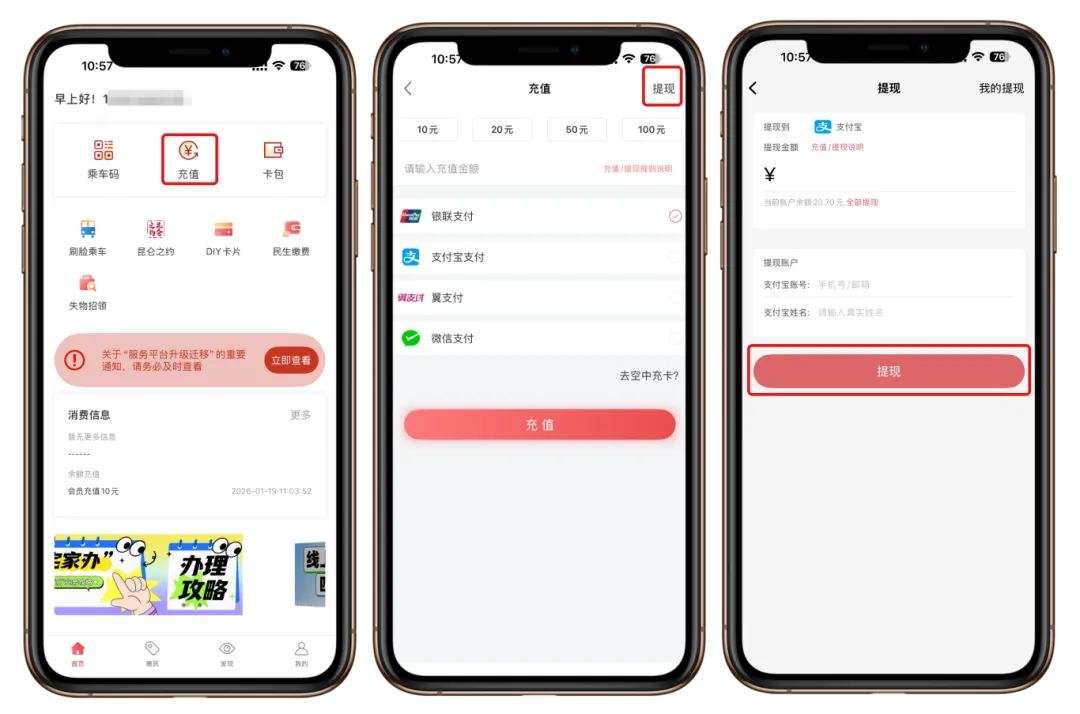 注:APP内的登录、迁移公告查询、余额提现、手机乘车卡/地铁云卡管理及历史订单查询功能不受影响,仍可正常使用。