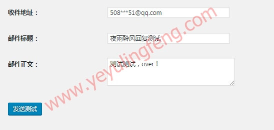 上面配置完成后保存更改,为了确保邮件发送功能是否能够正常使用,建议大家通过下方填写邮箱进行测试。如果能发送出邮件并接受到代表配置成功,反之按照老夜的教程一步步排查。