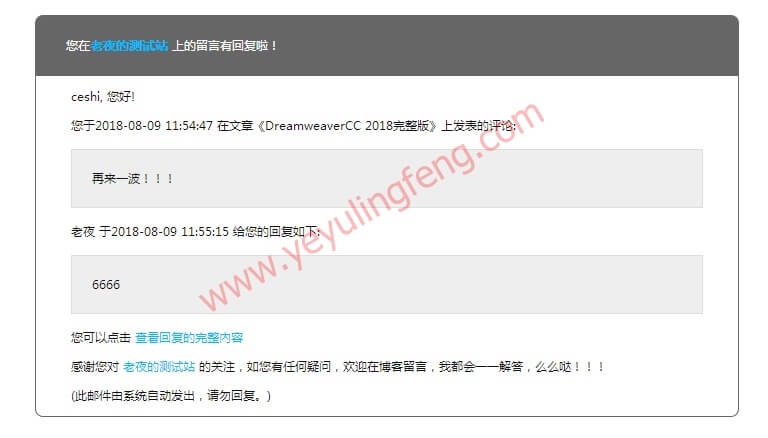 //评论回复邮件通知(所有回复都邮件通知)