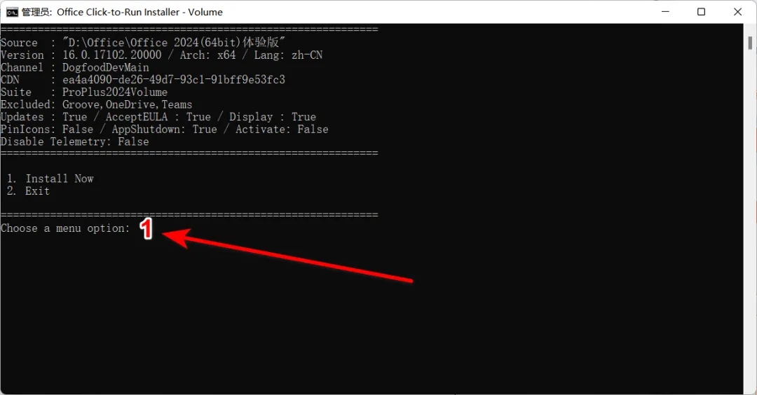 3、在弹出的命令窗口输入数字【1】,会自动开启安装。