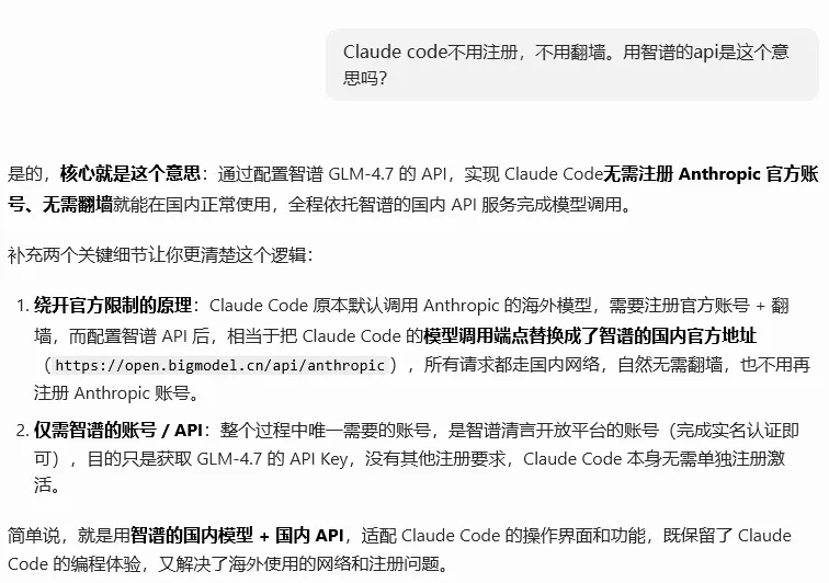 我又好奇去试了官方大力推荐的 Claude Code,结果更崩溃:要注册、要梯子,注册时还显示不再接收新用户。后来才知道有智谱 API 平替的方案,但当时我哪看得懂?只能再发给豆包,才明白这是不用注册 Claude 的替代方案。