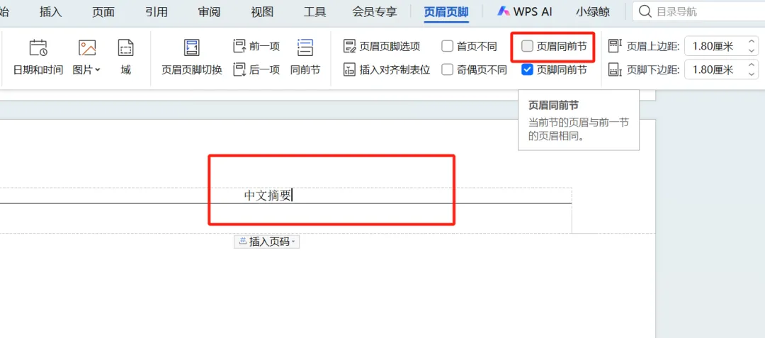 WPS如何取消前几页页眉页脚设置 双击页面空白处,点击插入——分页——连续分节符 然后双击页眉,取消勾选——页眉同前节 在不需要页眉页脚的上一页,点击配套组合——删除页眉页脚 前几页的页眉页脚就消失了。