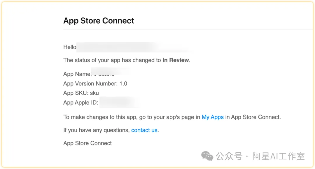 你的app已经进入苹果商店审核,坐等回复就行了。