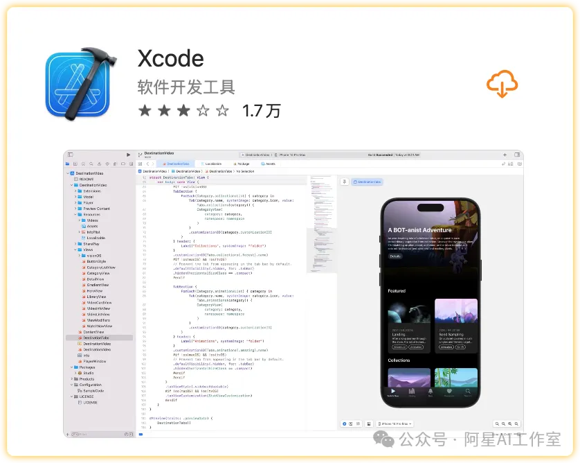 苹果开发者资格被批准之后。下载Xcode。(这个东西你就理解成苹果指定写代码的软件,必须在这个软件里签名才能发发送到apple store审核后台,你用其他软件写代码最后还是要用它上架)