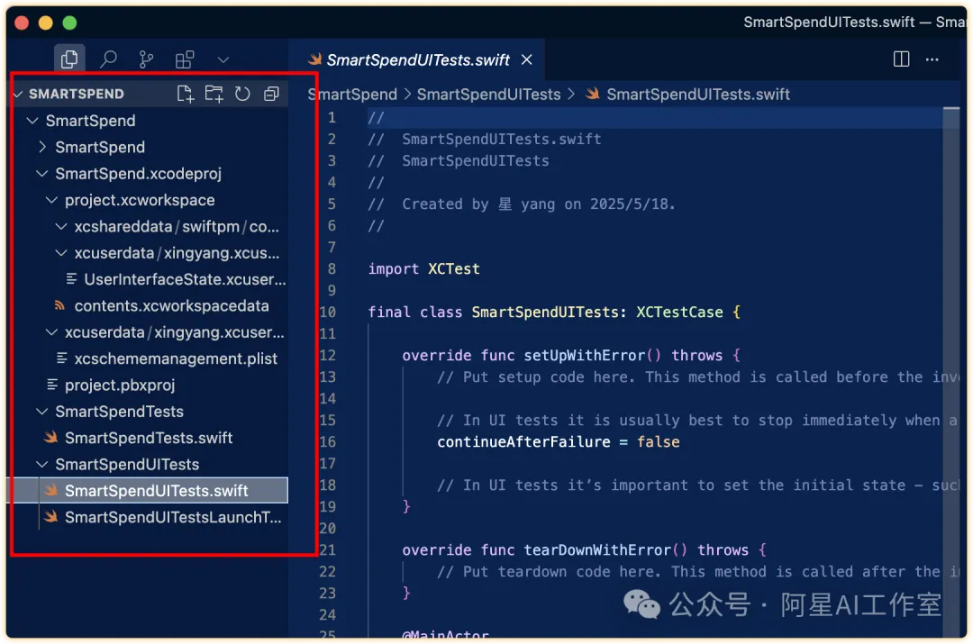 使用Swift语言,为我开发一款移动应用,它的功能介绍如下## 产品概述- 产品名称:SmartSpend- 功能概述:一款AI自动记账应用,通过智能识别消费记录和手动输入相结合的方式,帮助用户轻松管理个人财务- 应用平台:iOS设备## 核心功能模块### 1. 智能记账- 自动解析短信/邮件中的消费记录- 截图OCR识别账单内容- 智能分类(餐饮/购物/交通等)### 2. 手动记账- 快速记账表单(金额/分类/日期/备注/账户)- 常用模板保存- 周期性账单自动记录### 3. 数据可视化- 消费趋势图表(日/周/月)- 分类占比环形图- 预算进度提醒### 4. 账户管理- 多账户余额展示(现金/银行卡/电子钱包)- 账户间转账记录- 余额变动提醒