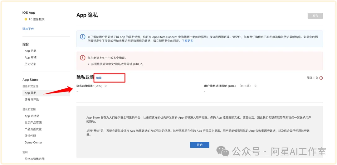 发布成功点击链接后你会发现,你的app已经被发送到apple store connect上了。点进去开始填表。