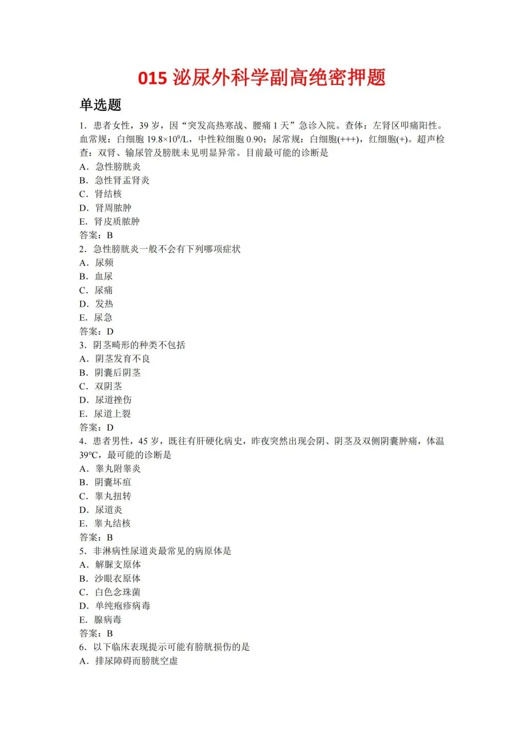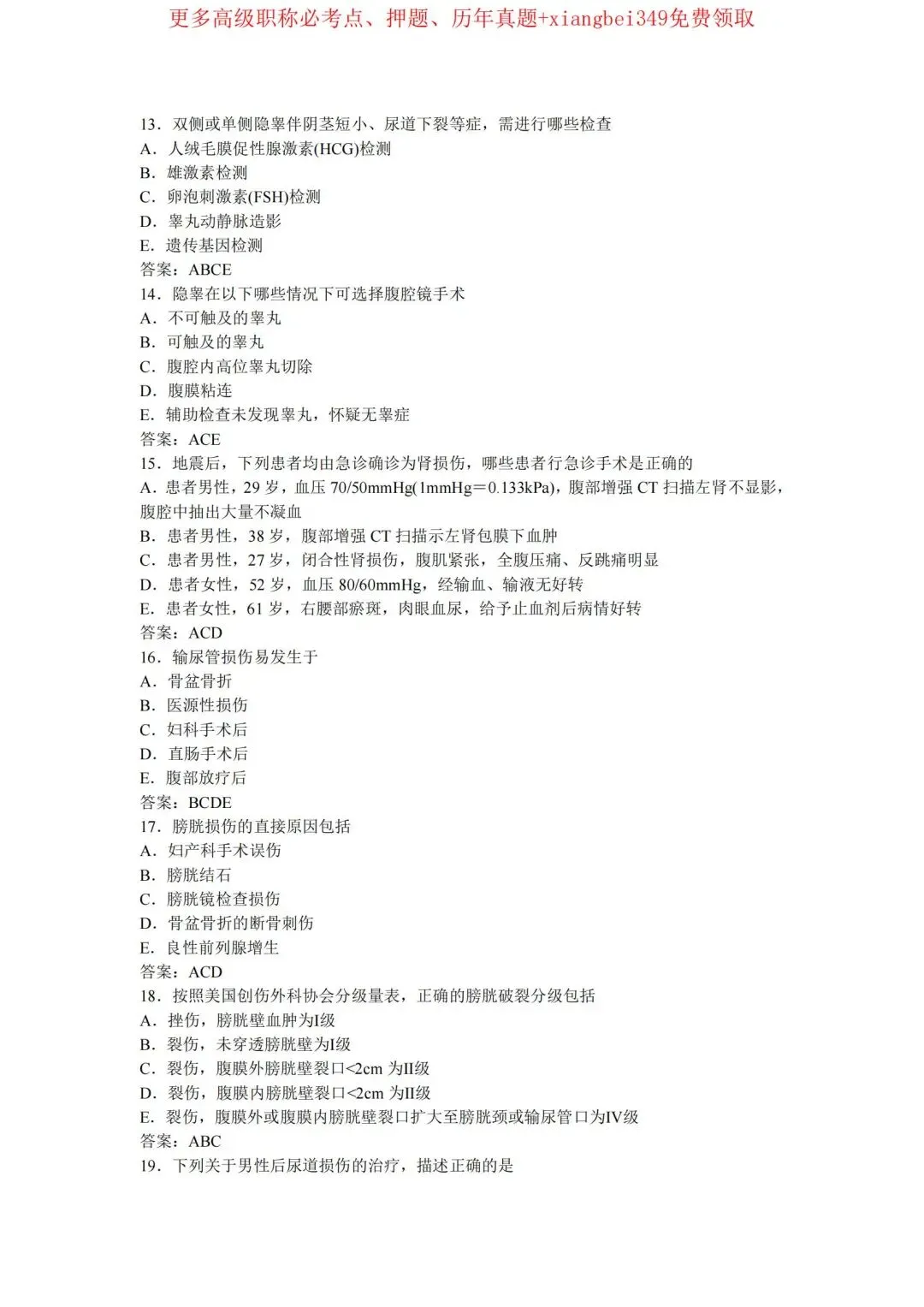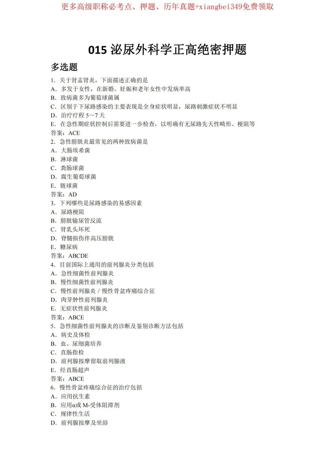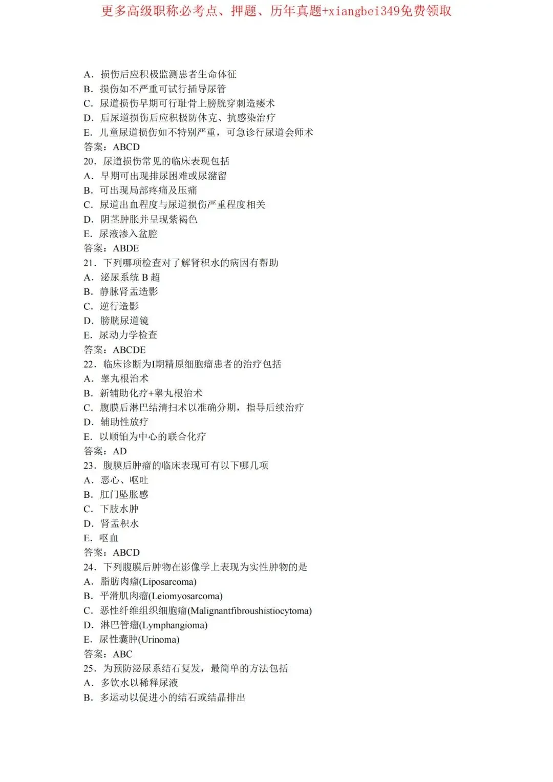 以上是泌尿外科学高级职称015备考资料包部分精华内容节选完整版领取如下: