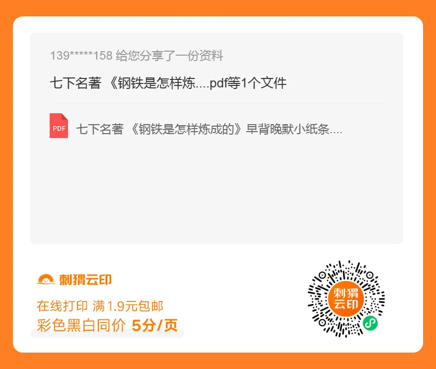 打印资料:《钢铁是怎样炼成的》早背晚默(可下载打印)