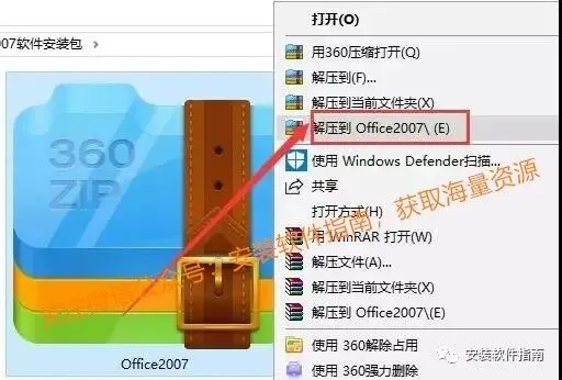 1、右键点击【office2007】选择【解压到office2007】,等待解压完成