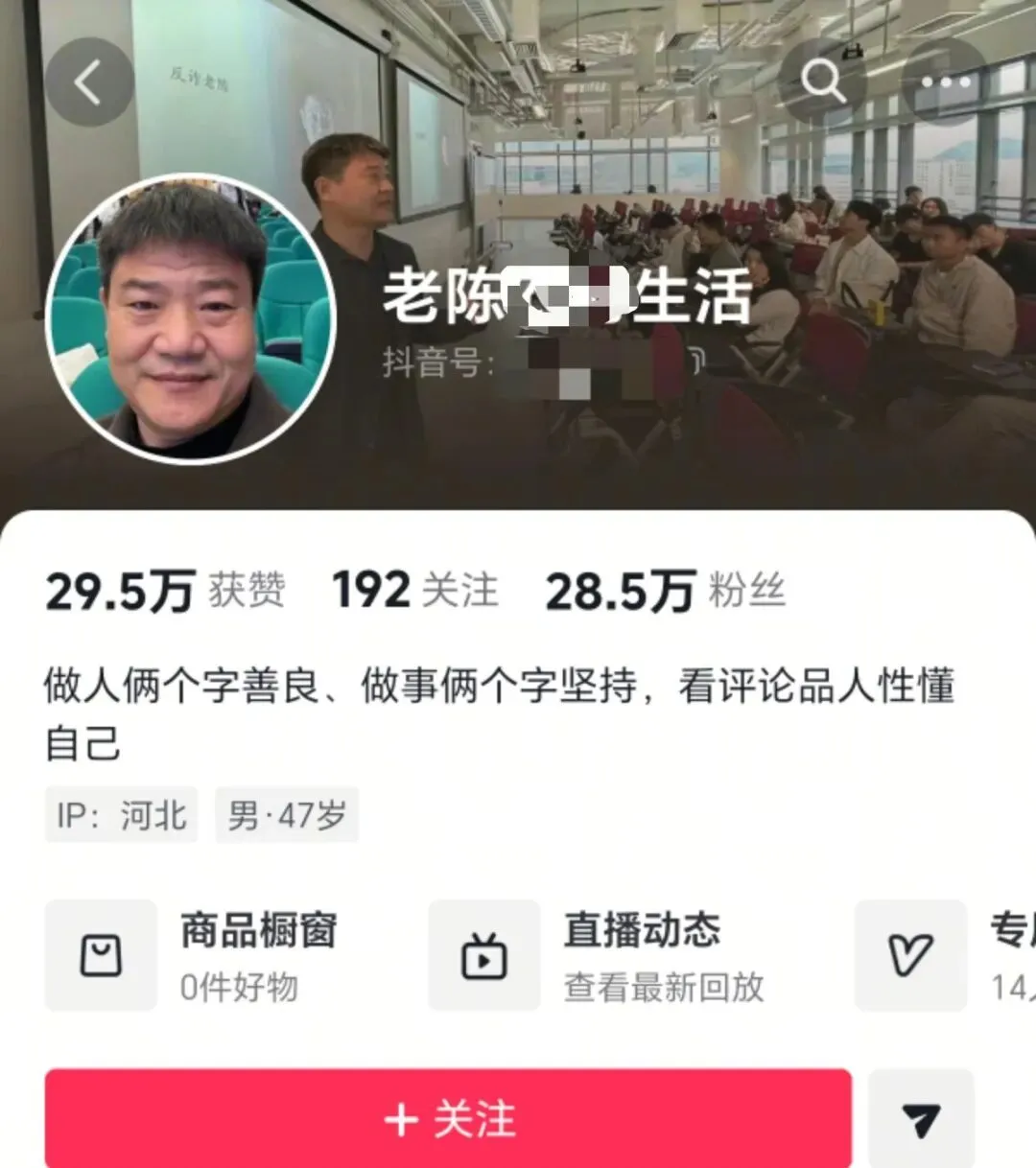 从收入数据看,老陈的网红路并不平坦。2025年11月,他首度公开收入状况:三年总收入约100万元,其中打赏约占80万,卖货约20万。但他也坦言,“挣得多,花得也多”,先后投资养羊亏损80万,开眼镜店投入20万效果也不理想,拍了反诈剧,最终“也没攒下”。