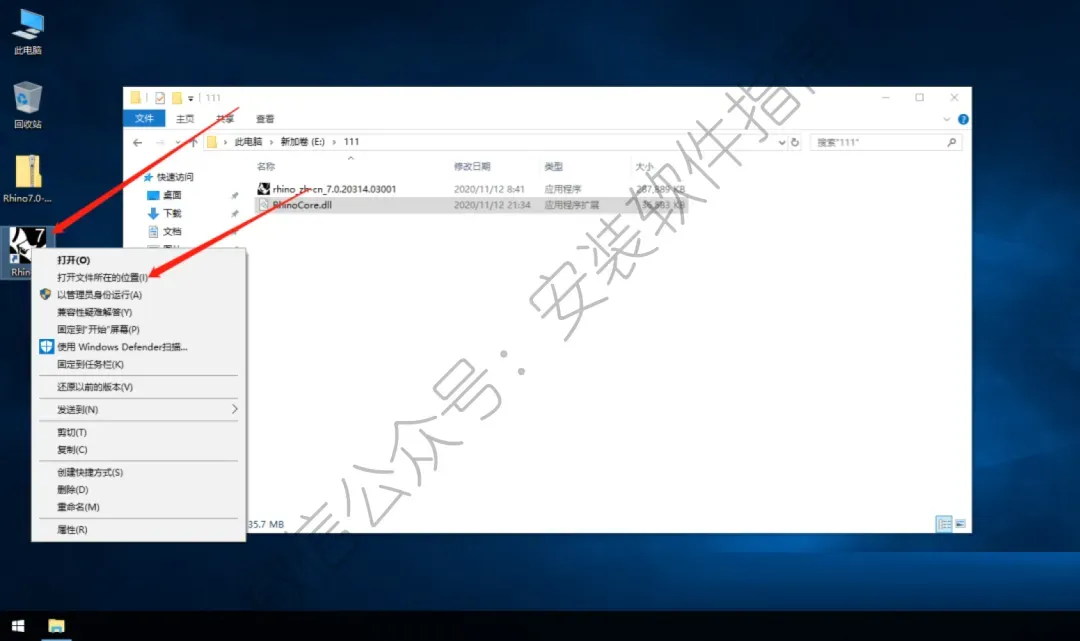 9、在桌面选中刚安装好的Rhino程序,右键选择“打开文件位置”,然后把激活工具粘贴进来,然后点“替换目标中的文件”!