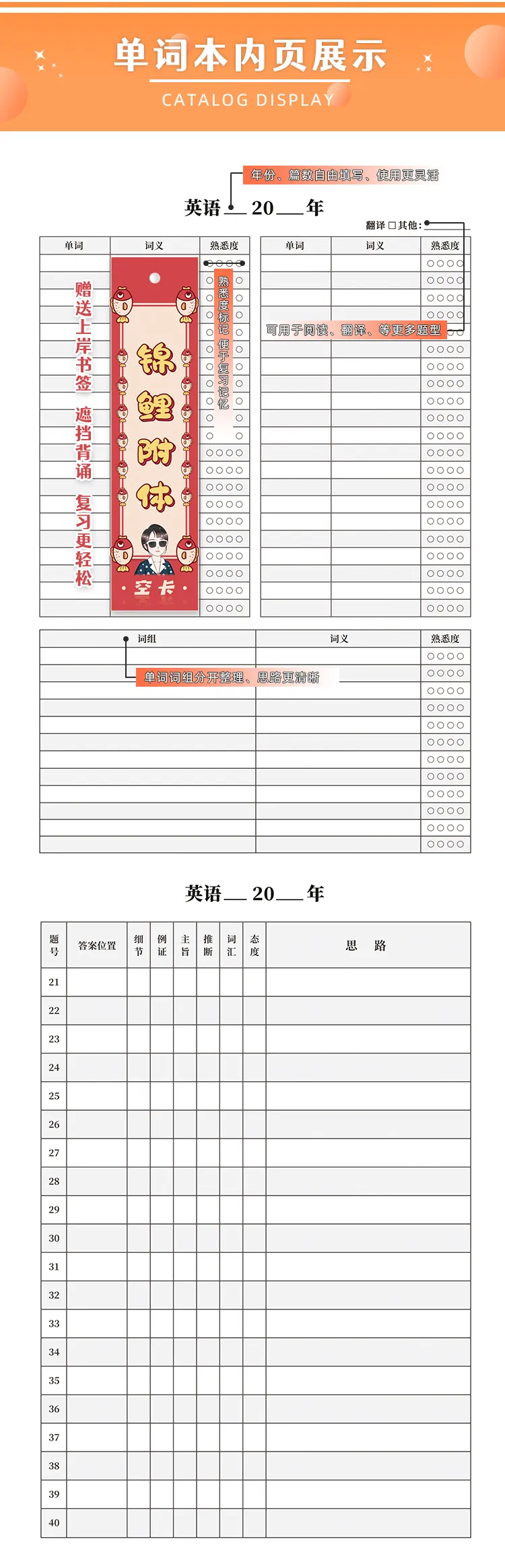 ·赠送同尺寸的上岸便签,用来遮挡背诵,保证有效记住每一个单词