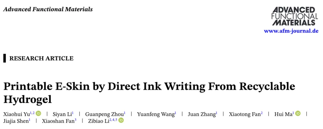 AFM: 采用可回收水凝胶,通过直接墨水书写技术制作的可打印电子皮肤