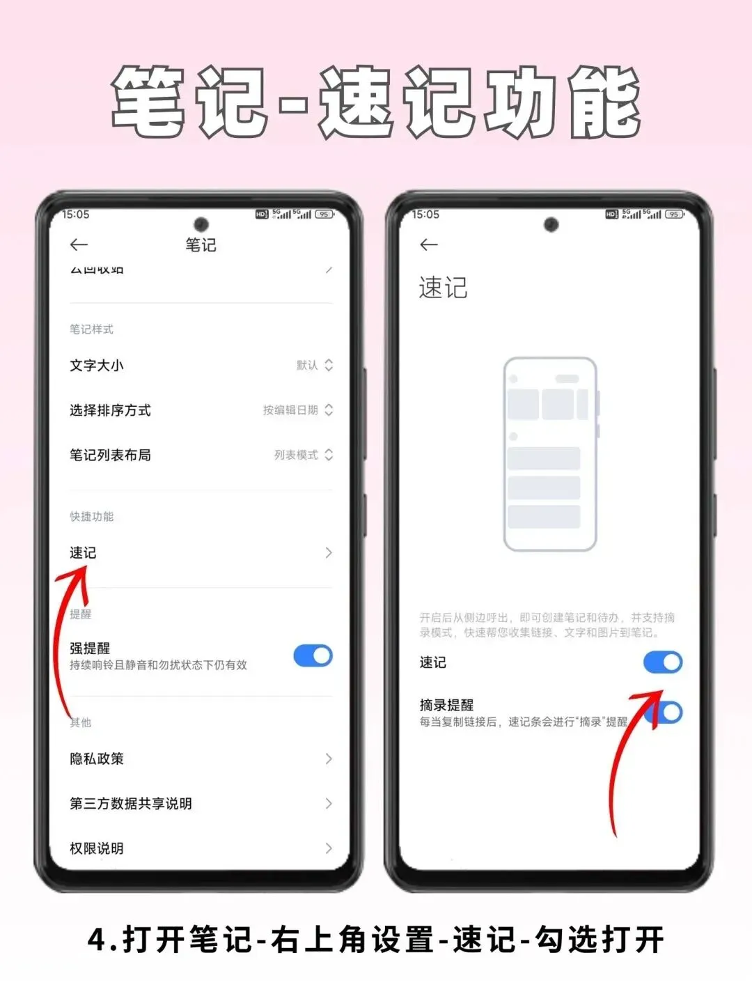 小米笔记的“速记”功能是资料整理的捷径。开启速记和摘录提醒后,浏览网页或APP时,长按复制文字或图片,从屏幕边缘侧滑拉出笔记栏,内容会自动粘贴,无需切换应用。支持分次摘录到同一笔记,结束后生成完整文档,写论文、做策划效率倍增。