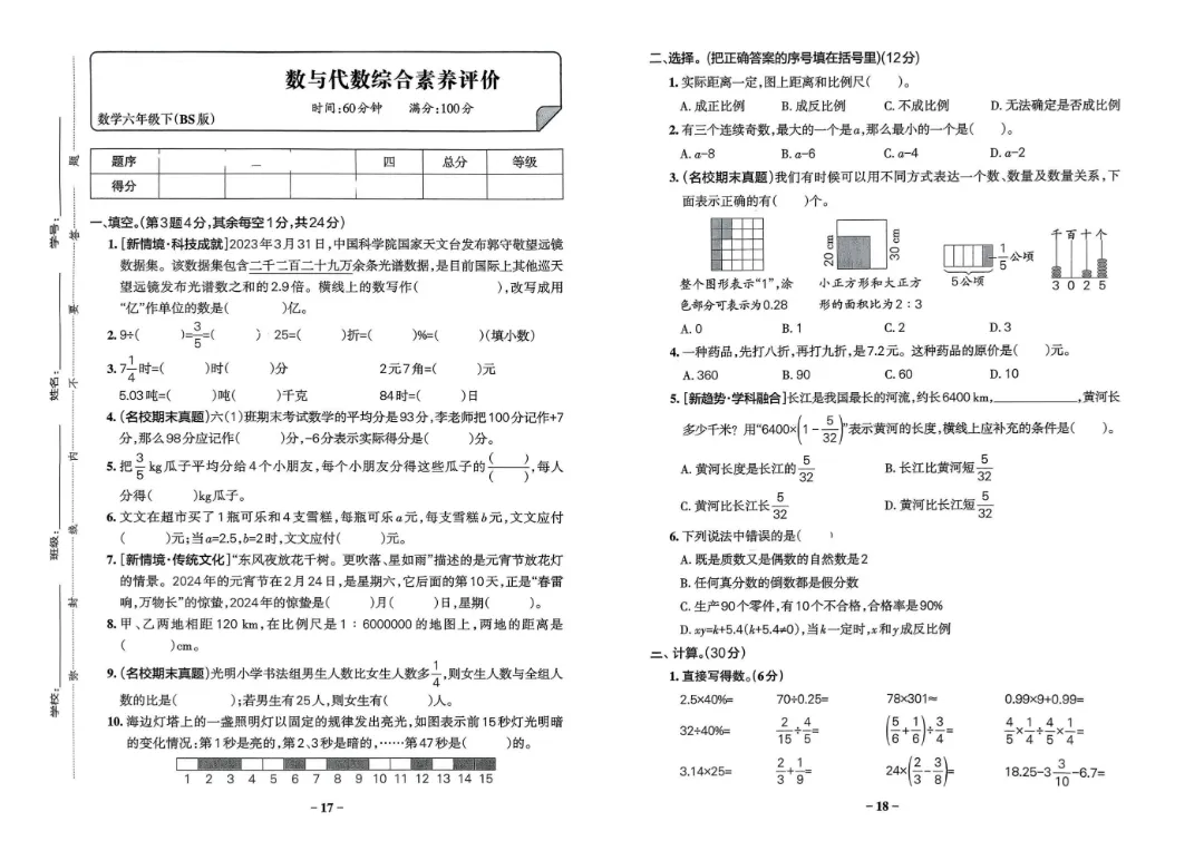 【北师大版】2026年春新版六年级下册数学《1-7单元素养卷+期中期末测试卷》(共8套附答案)‖高清可打印