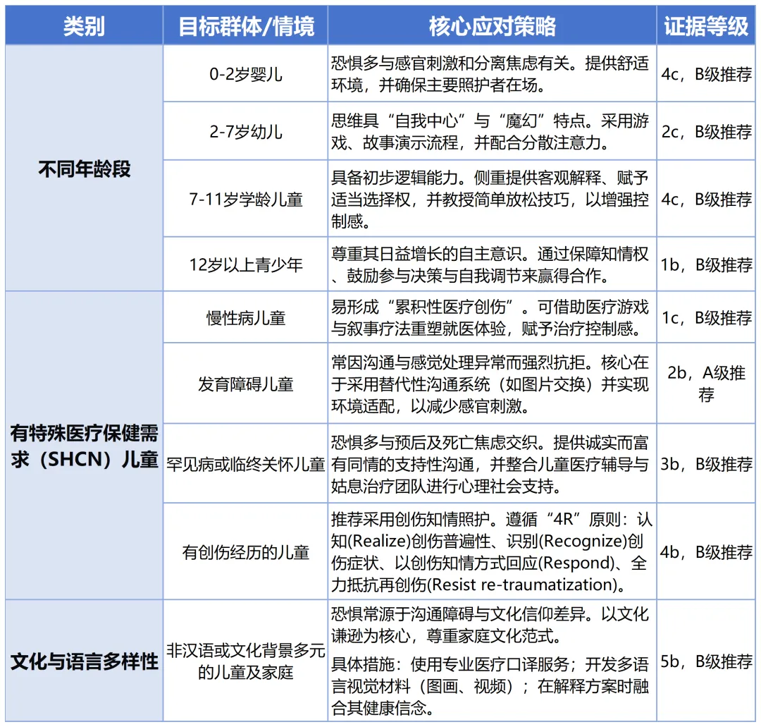 儿童医疗恐惧管理不仅是人文关怀的体现,更是提升治疗配合度、改善就医体验、预防心理创伤的重要临床实践。这份共识为临床提供了一套系统、循证且可操作的实施框架,可供儿科及相关科室的医务工作者结合日常实践参考与应用。