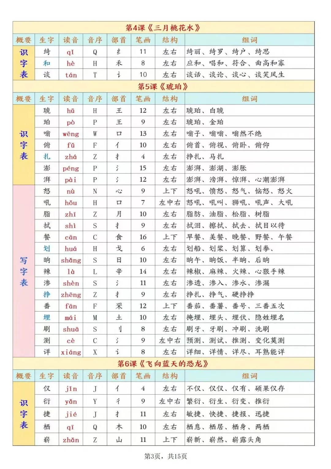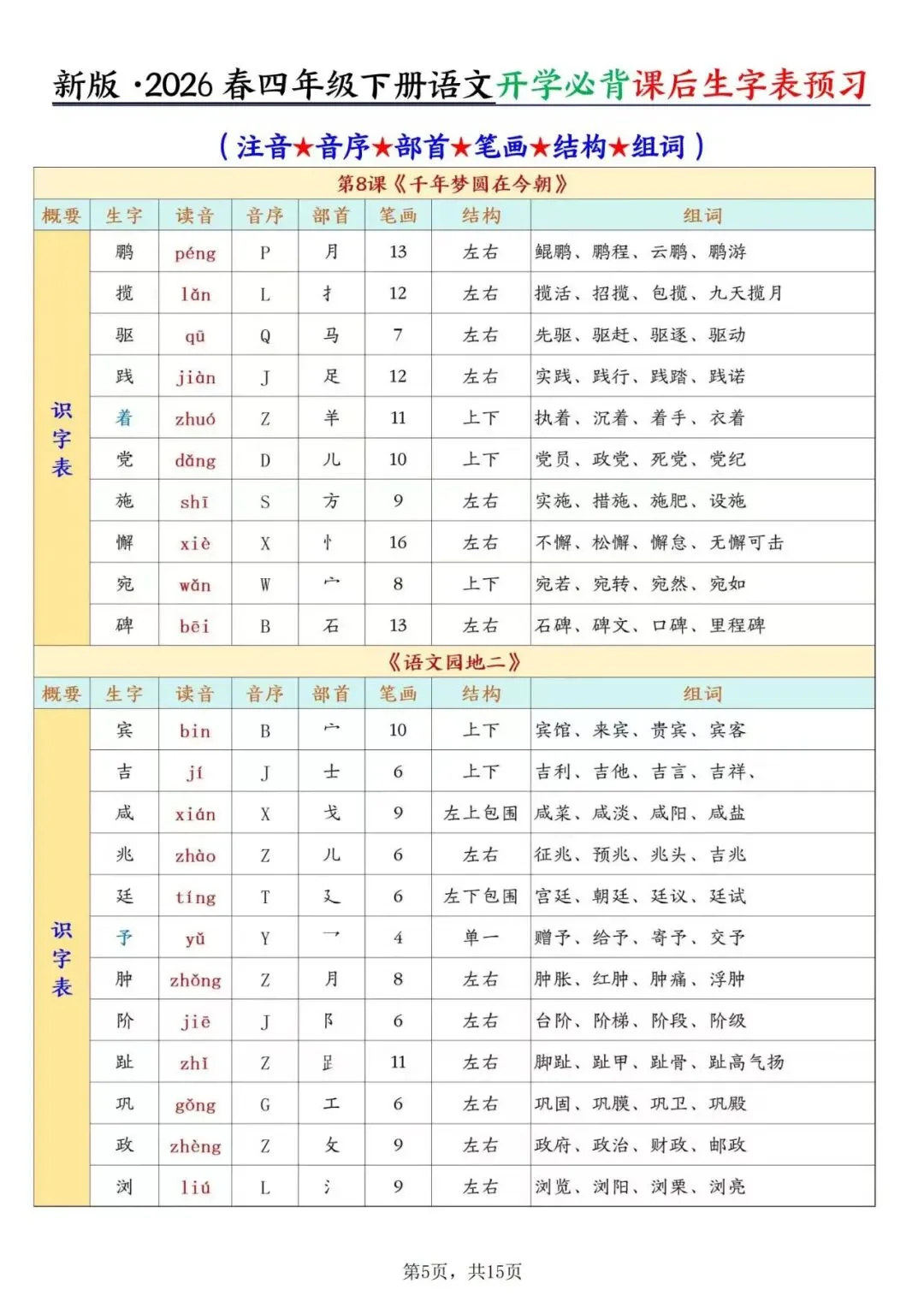 四年级下册语文《课后生字表预习》,电子版可打印