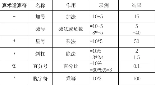 注意事项:+ / –可用于日期运算,如=A1+7 表示日期加7天;*支持矩阵乘法和数组运算;%相当于除以100;^如=A1^(1/2) 表示平方根。