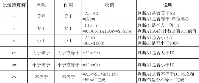 二、比较运算符(比较两个值,返回TRUE 或FALSE)