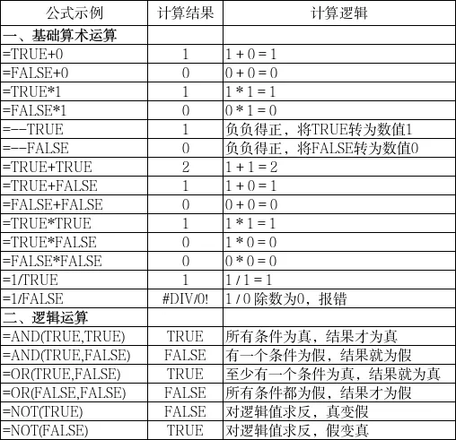 七、TRUE 和 FALSE 与1和0的“全部”计算关系