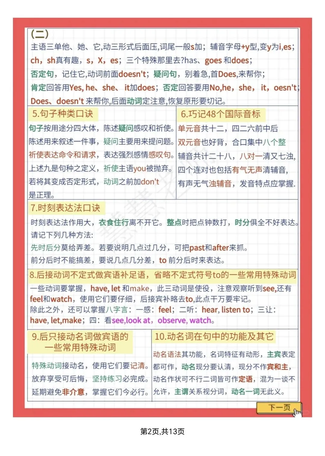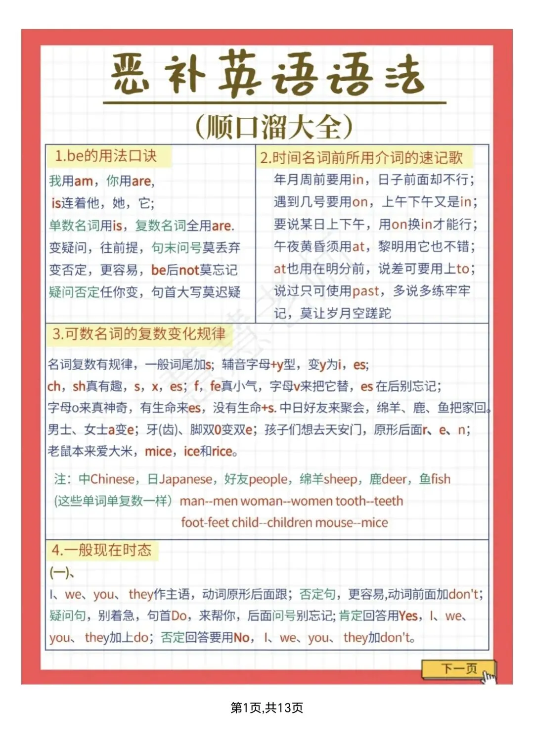 (新)小学英语语法顺口溜大全,PDF电子版可打印
