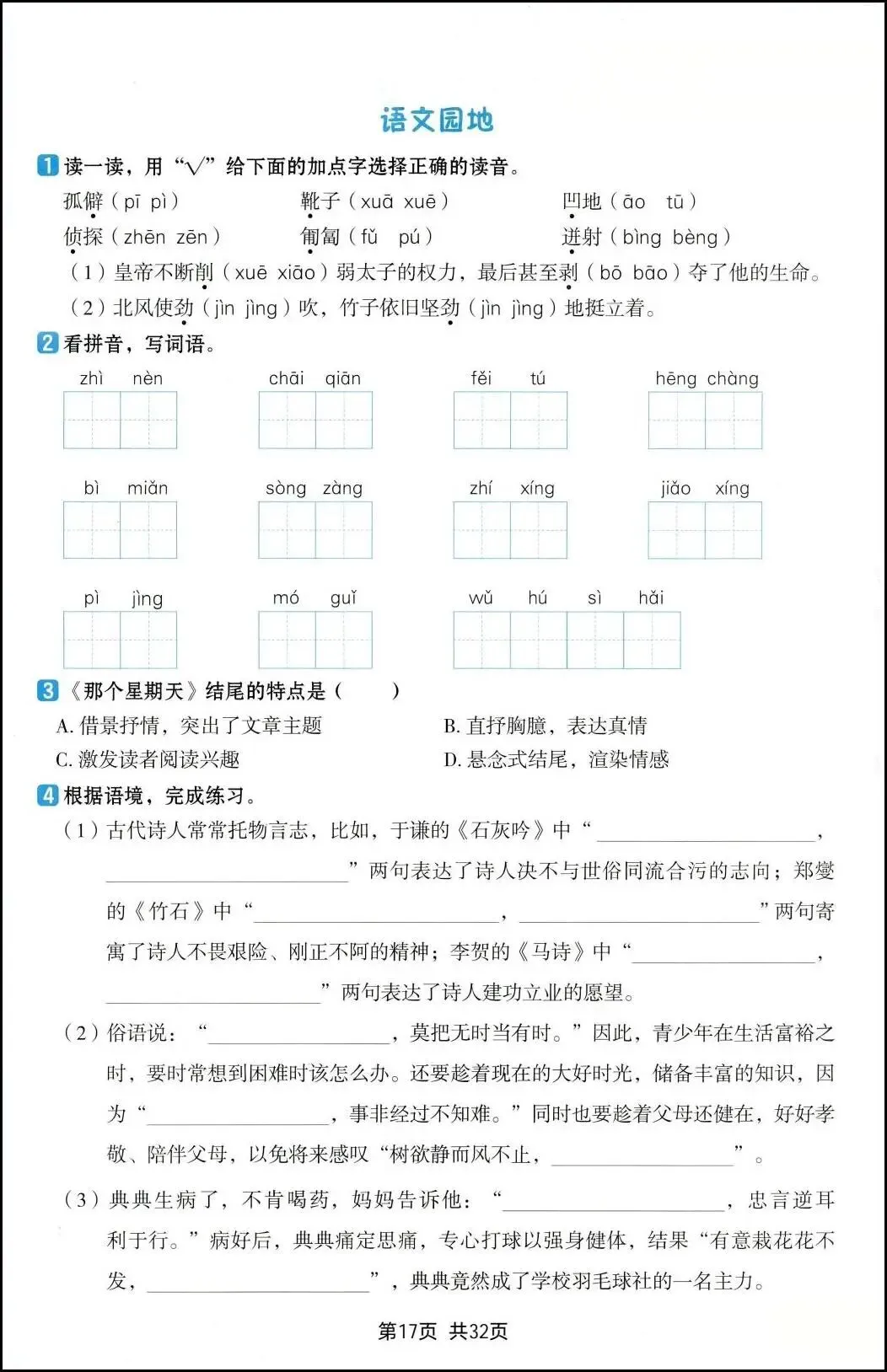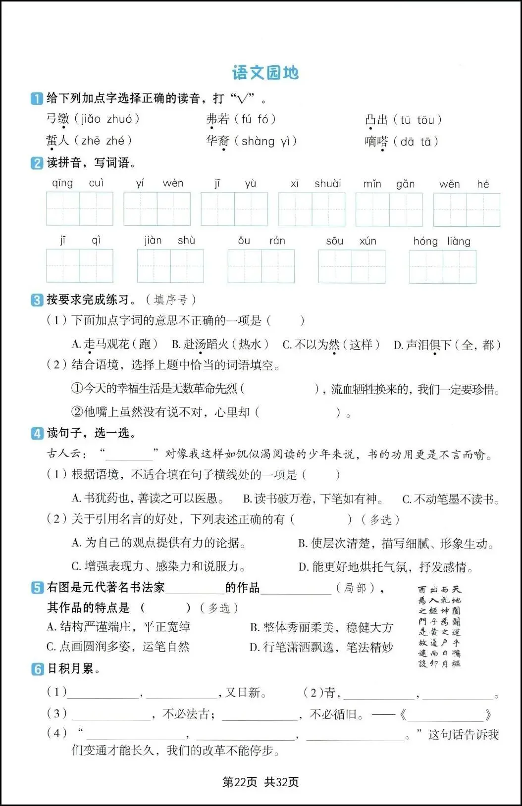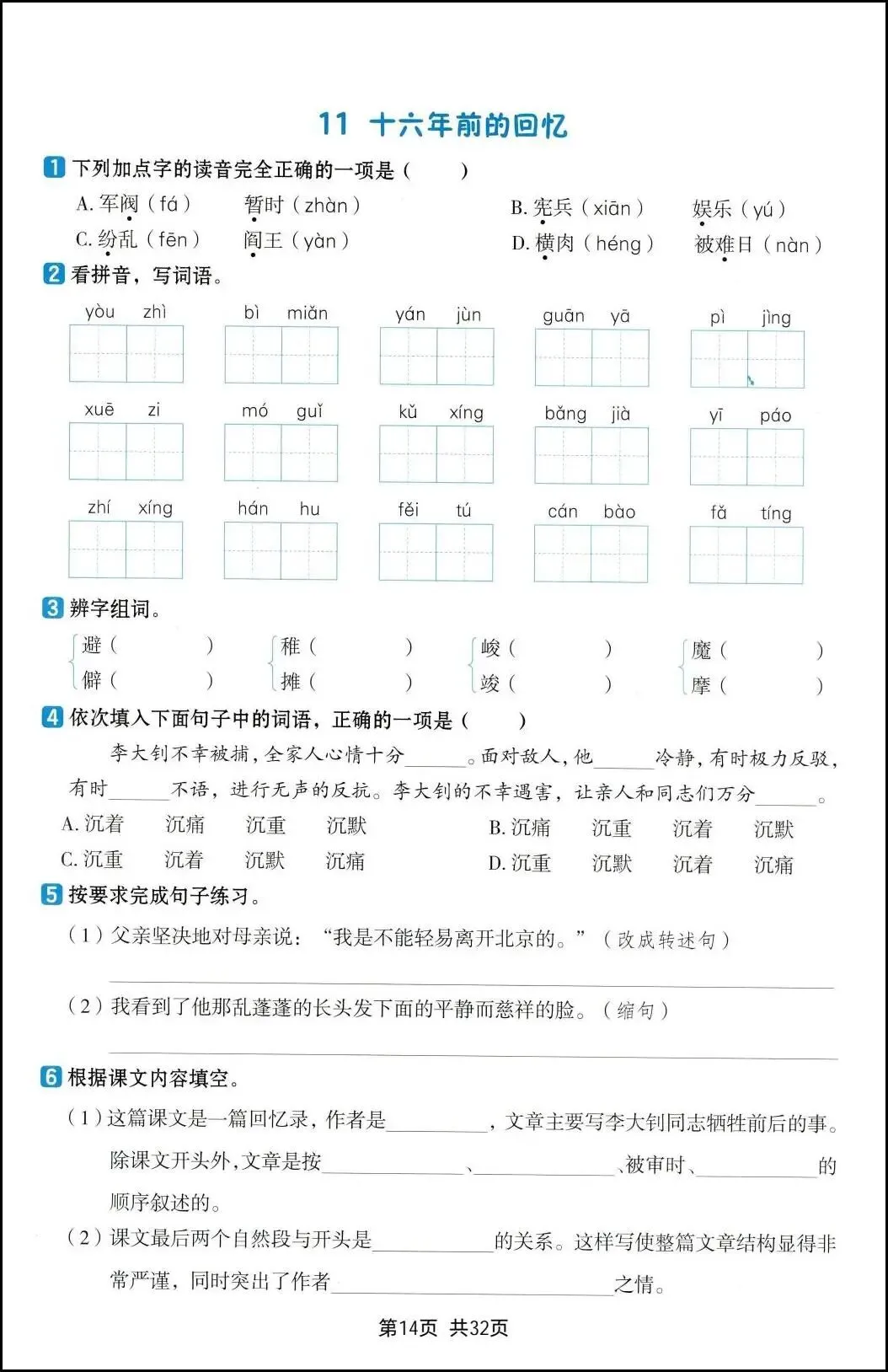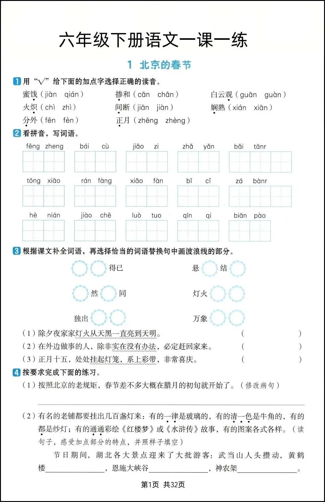 26新六年级下册语文《一课一练》,电子版可打印