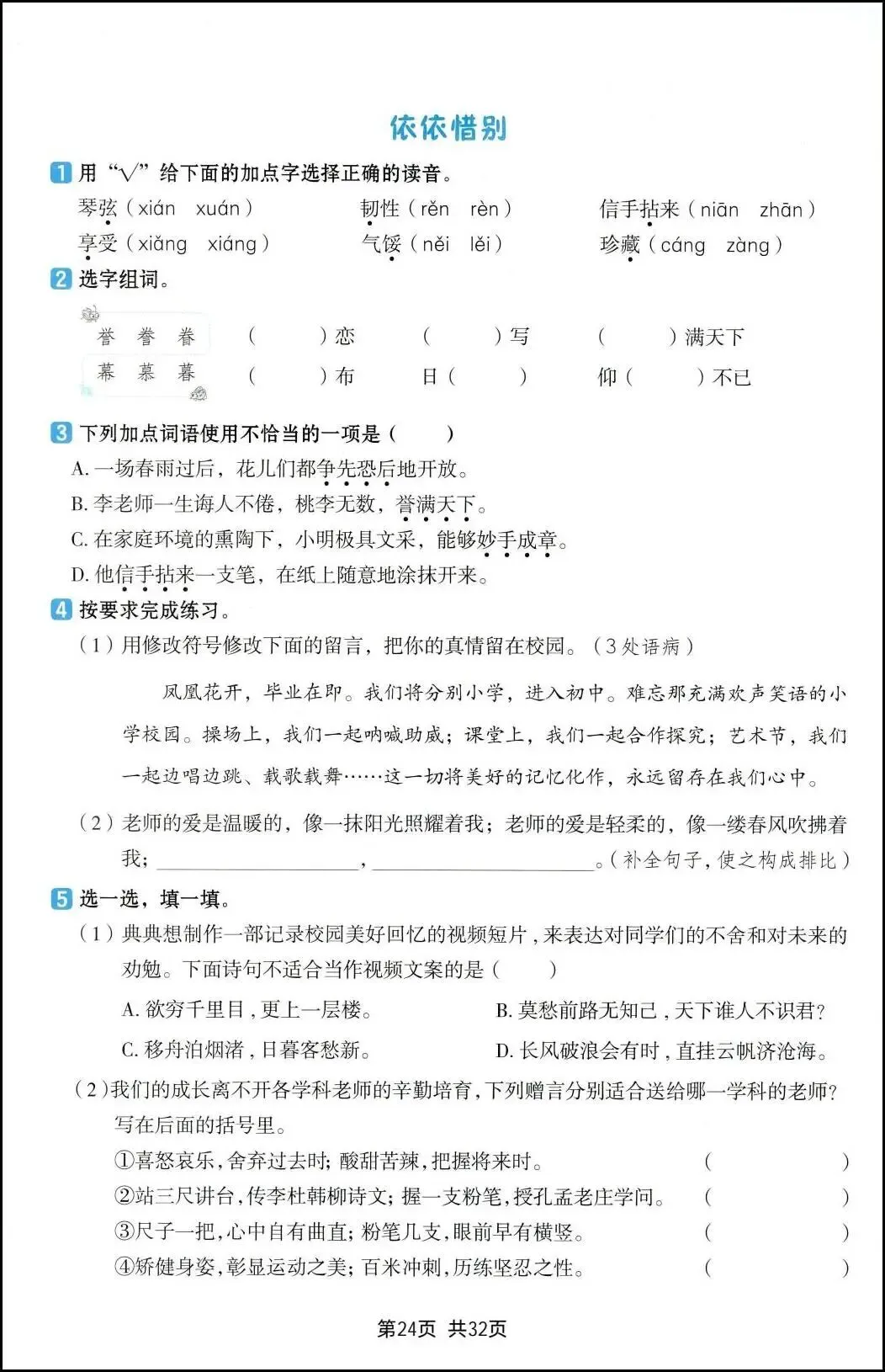 😉 今天分享25新六年级下册语文《一课一练》,含答案共32页,可提供电子版方便下载打印。这份资料整理了每课需要掌握的知识点,突出单元主题、核心能力训练点与重点知识模块。通过练习,帮助学生巩固知识,提高语文水平。