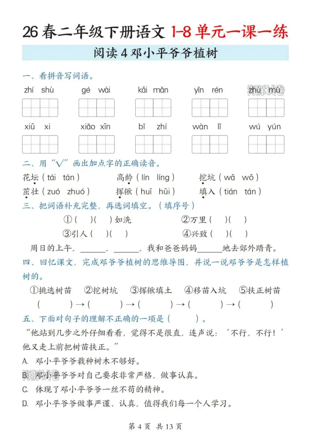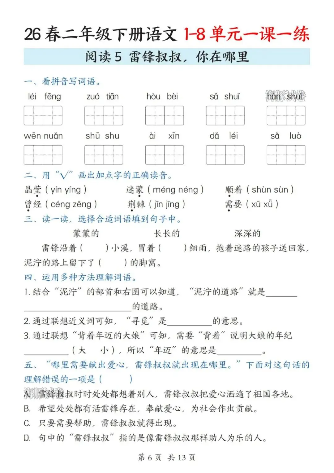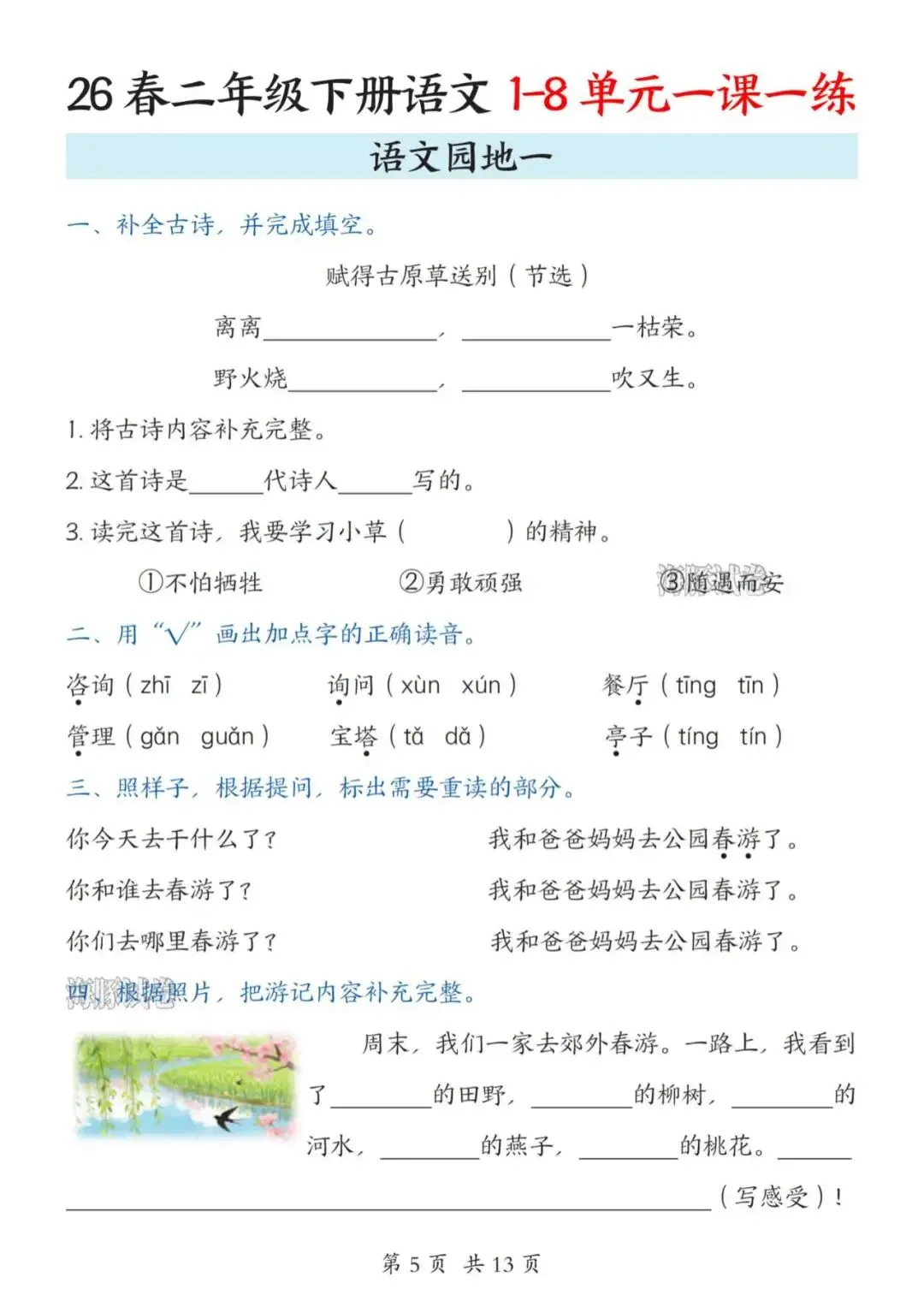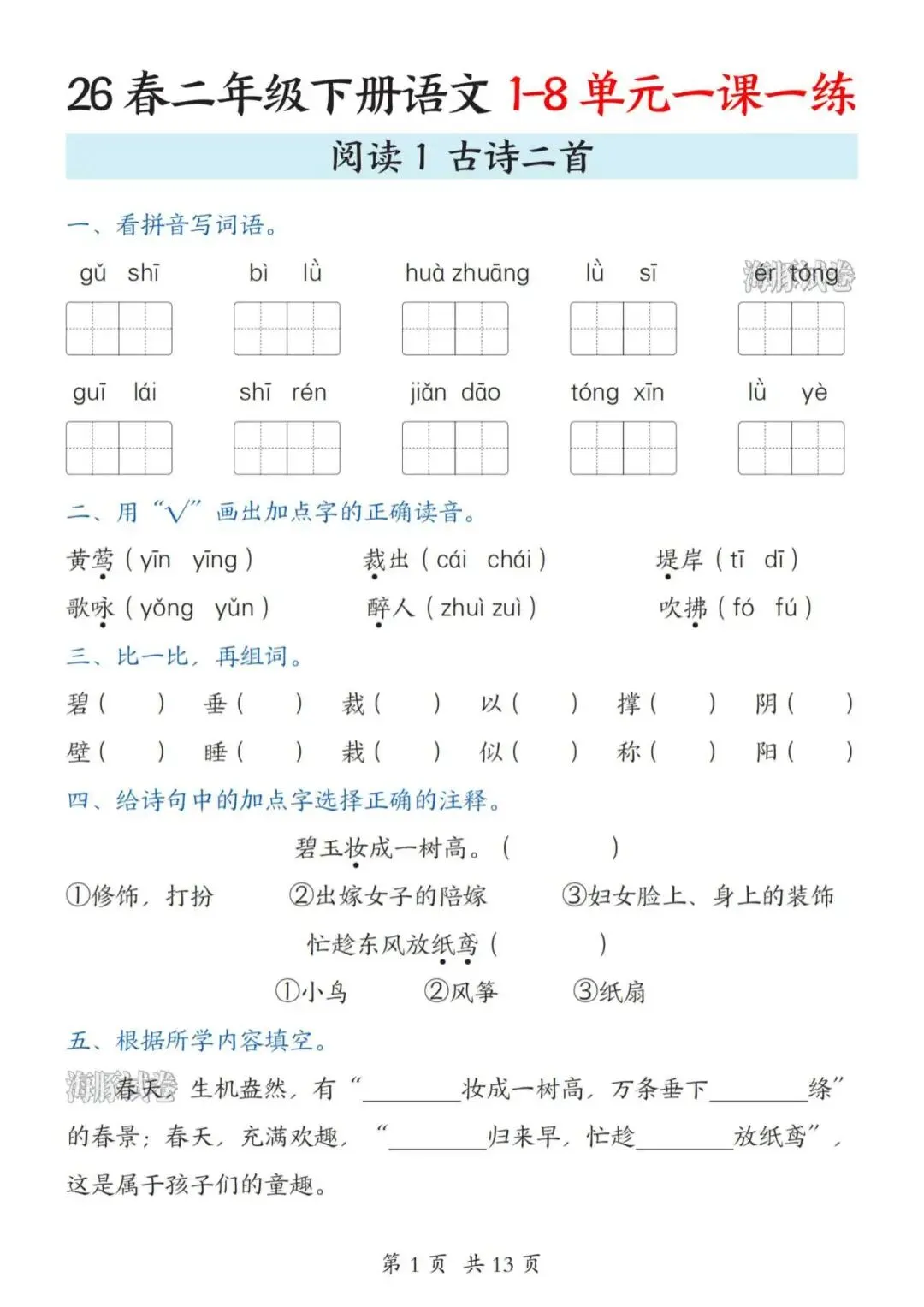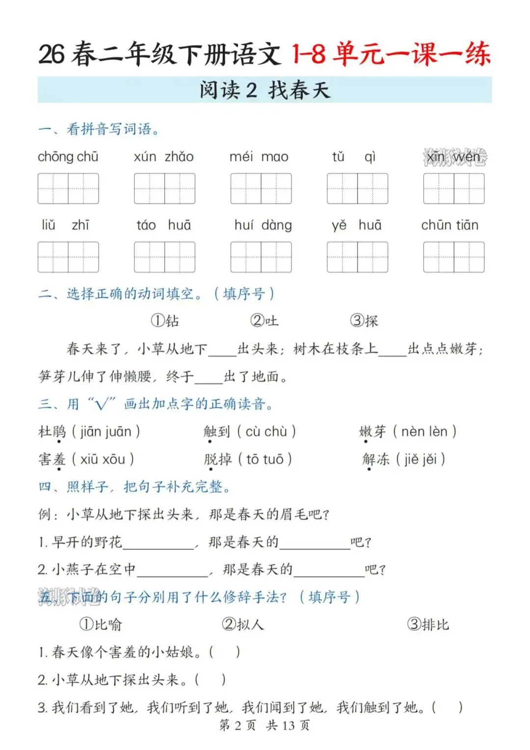 26春二年级下册语文全册一课一练(电子版可打印)
