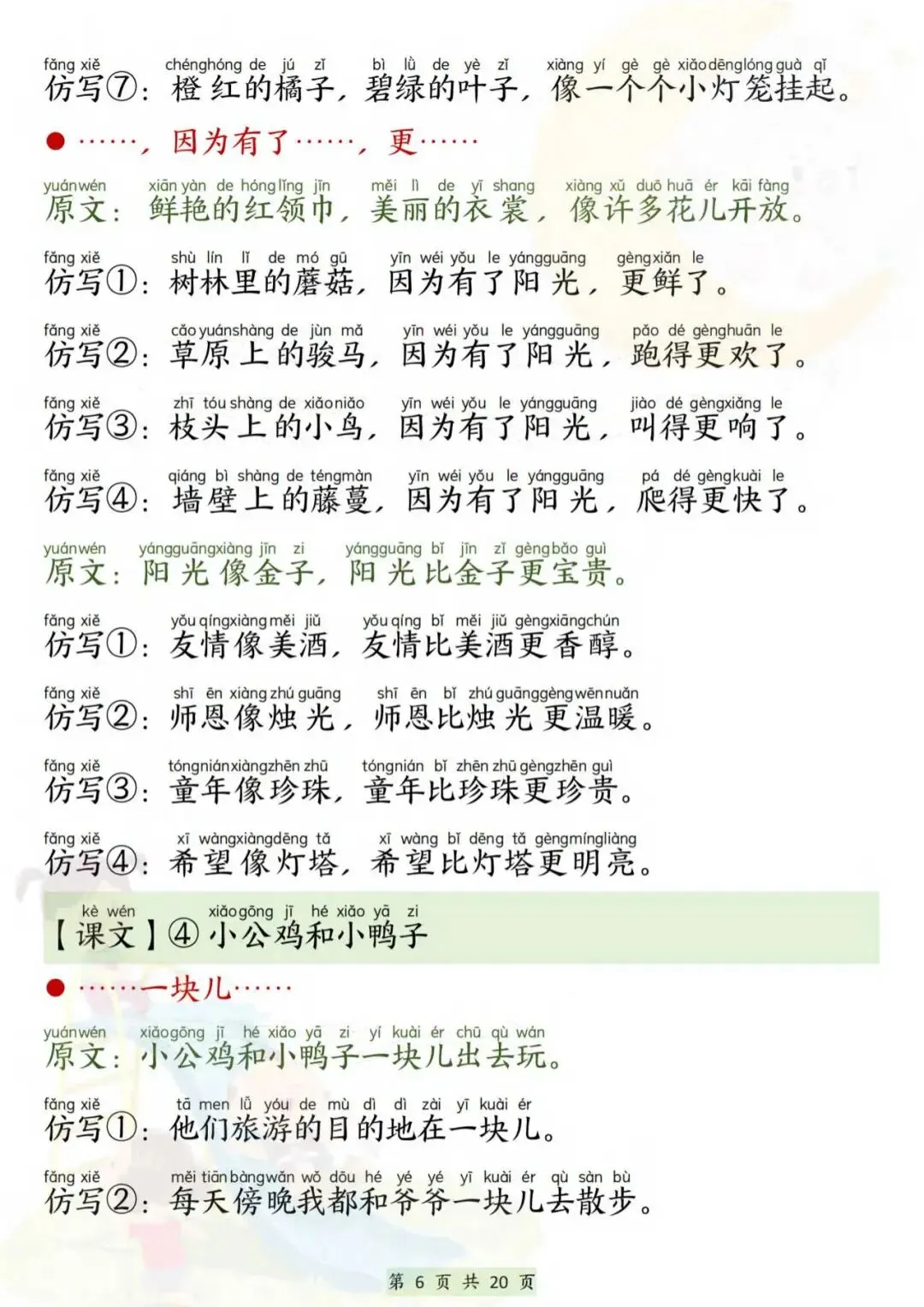 26春一年级下册语文必背仿写句子(电子版可打印)