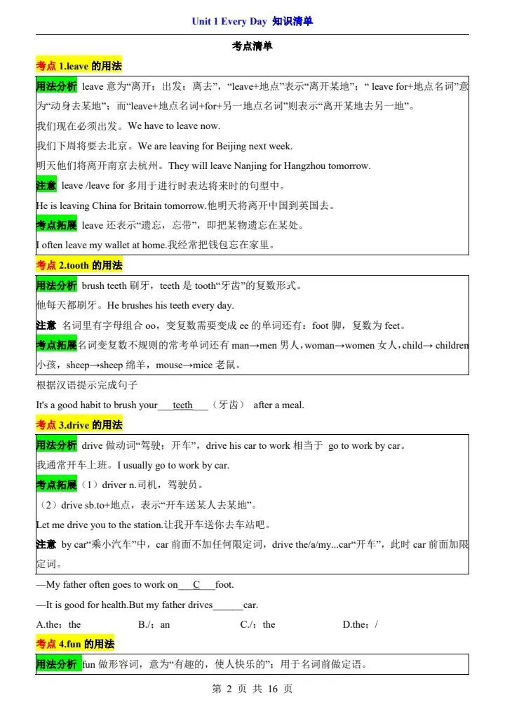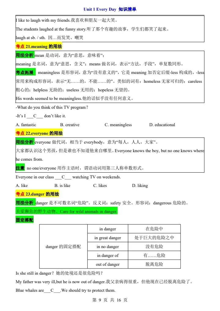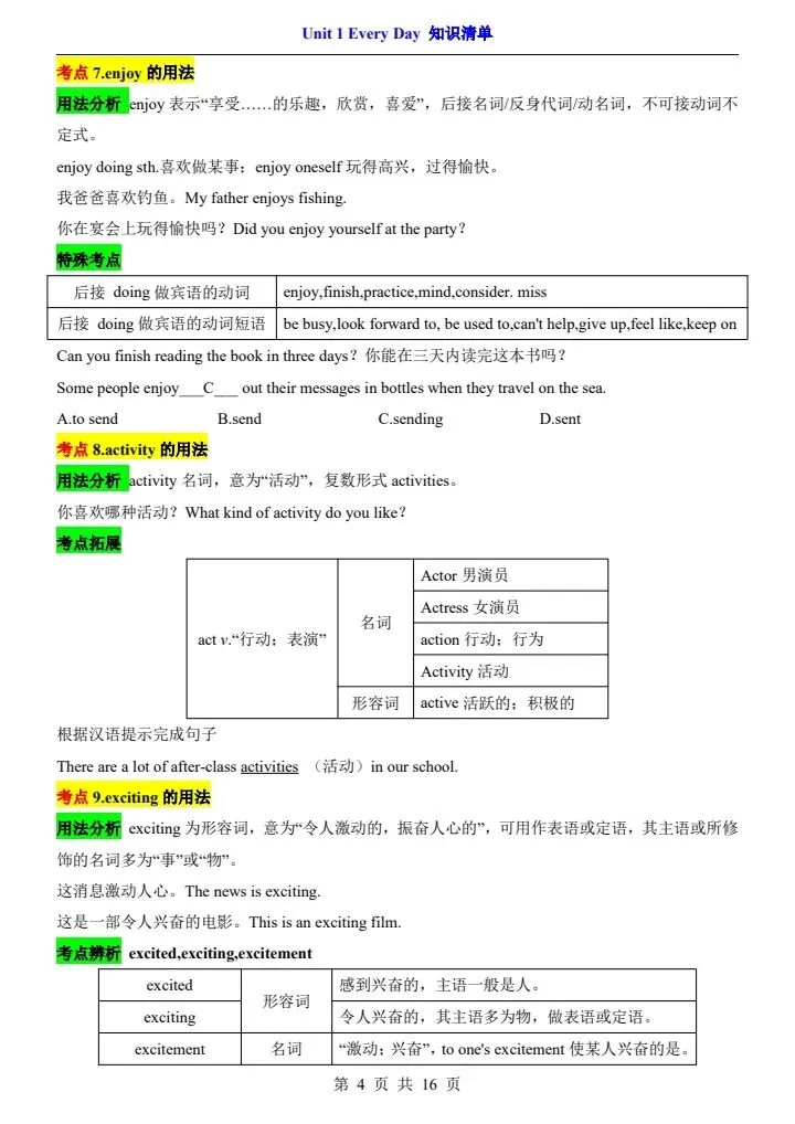 【北师版】七年级下册英语知识梳理+考点拓展(完整电子版可打印)