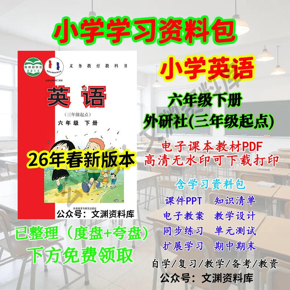 26年春新小学英语六年级下册外研社版三年级起点电子课本教材pdf高清无水印可下载打印预习复习备考教学学习专用