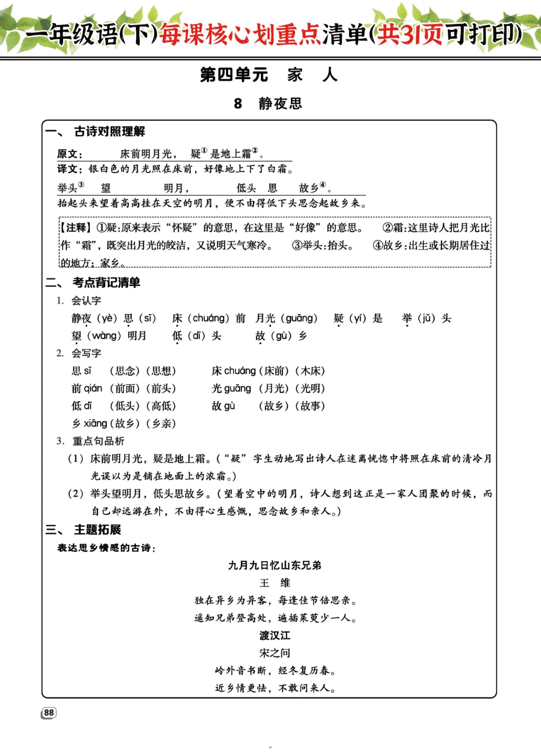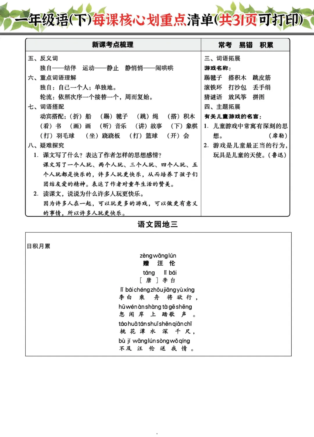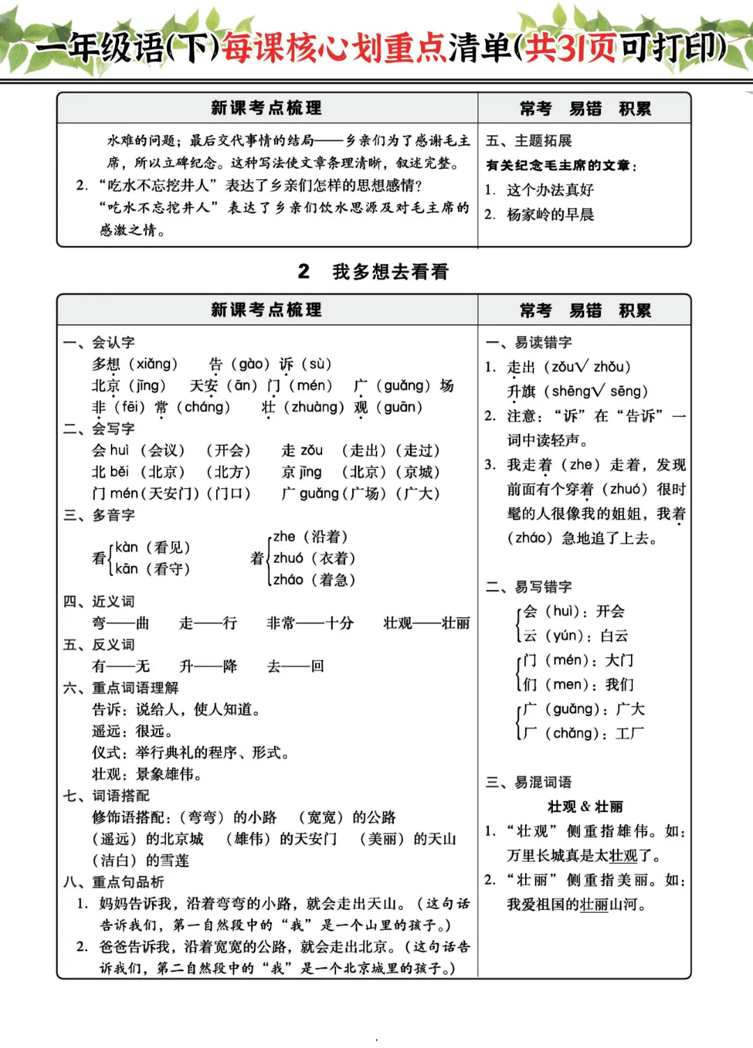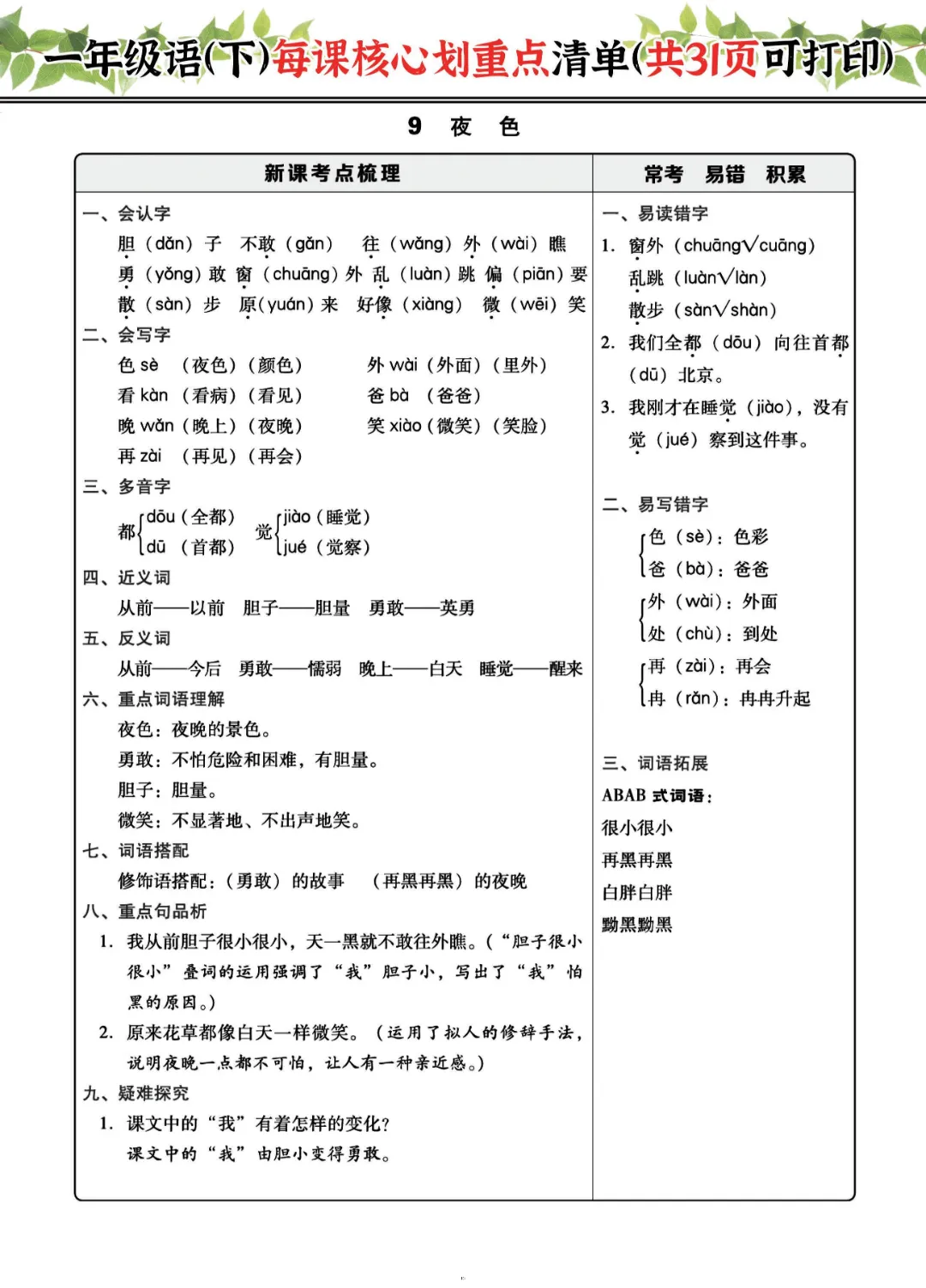 2026年一年级下册语文每课核心划重点|电子版可打印