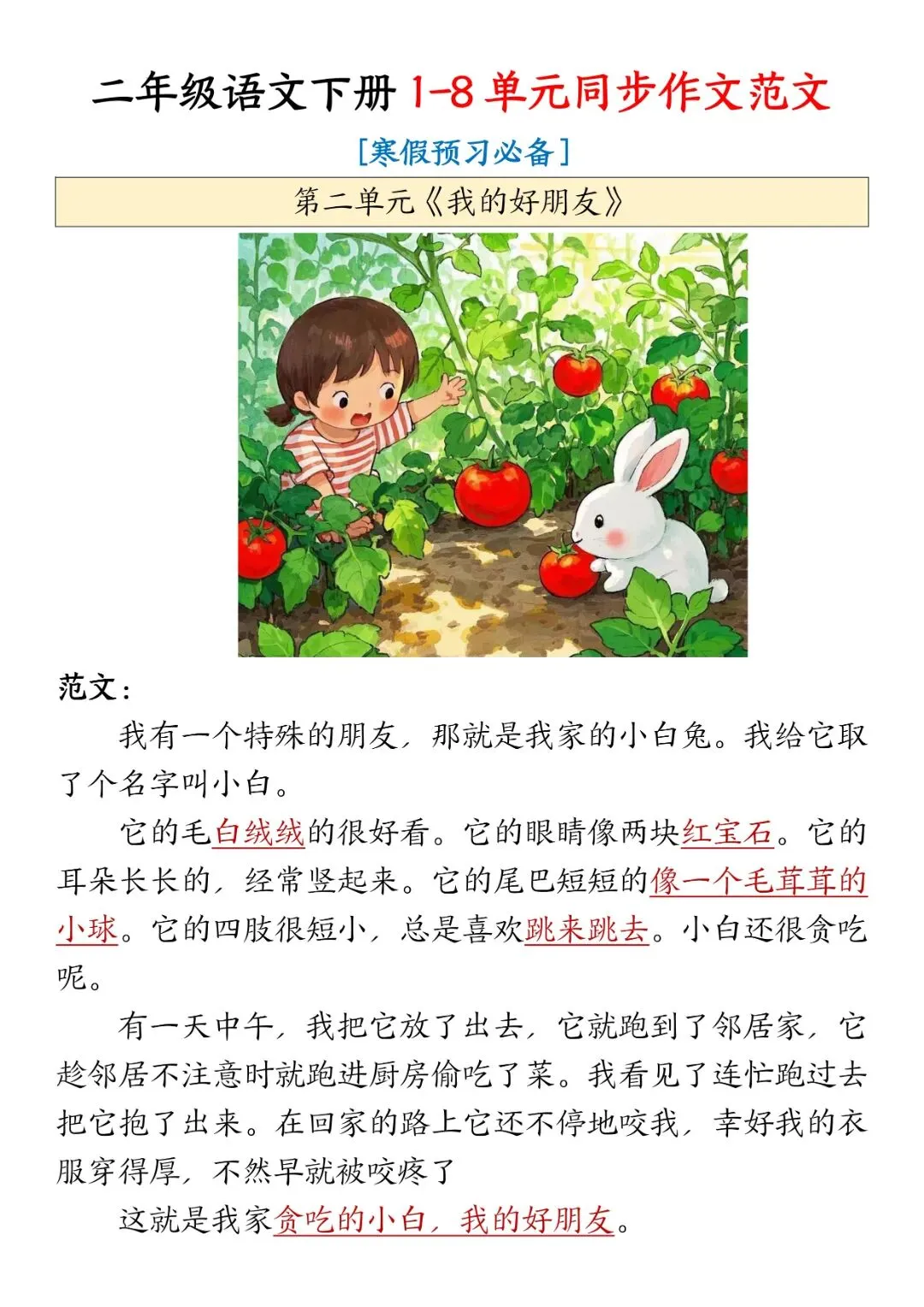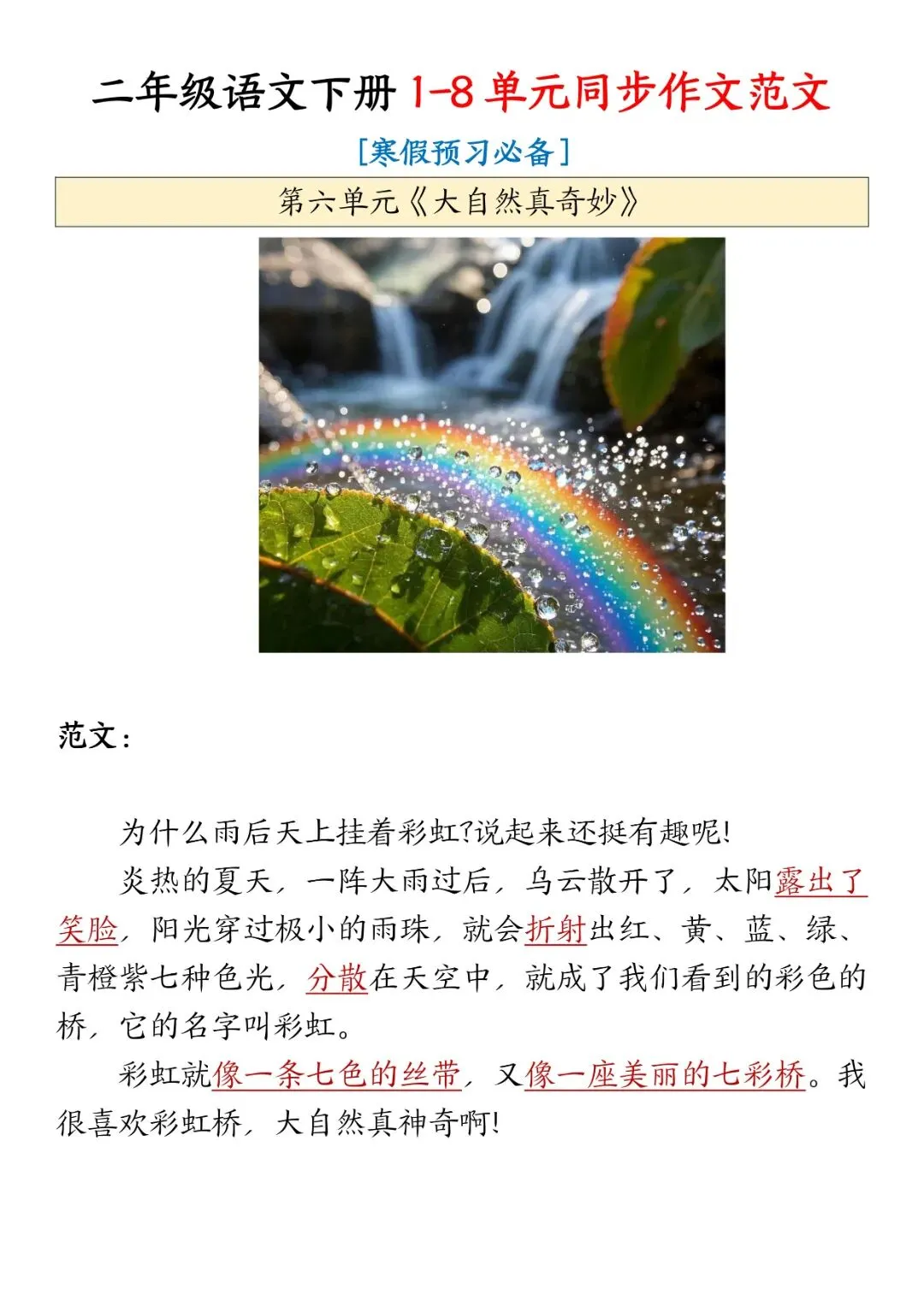 2026春《二年级下册语文同步作文范文》电子版可打印