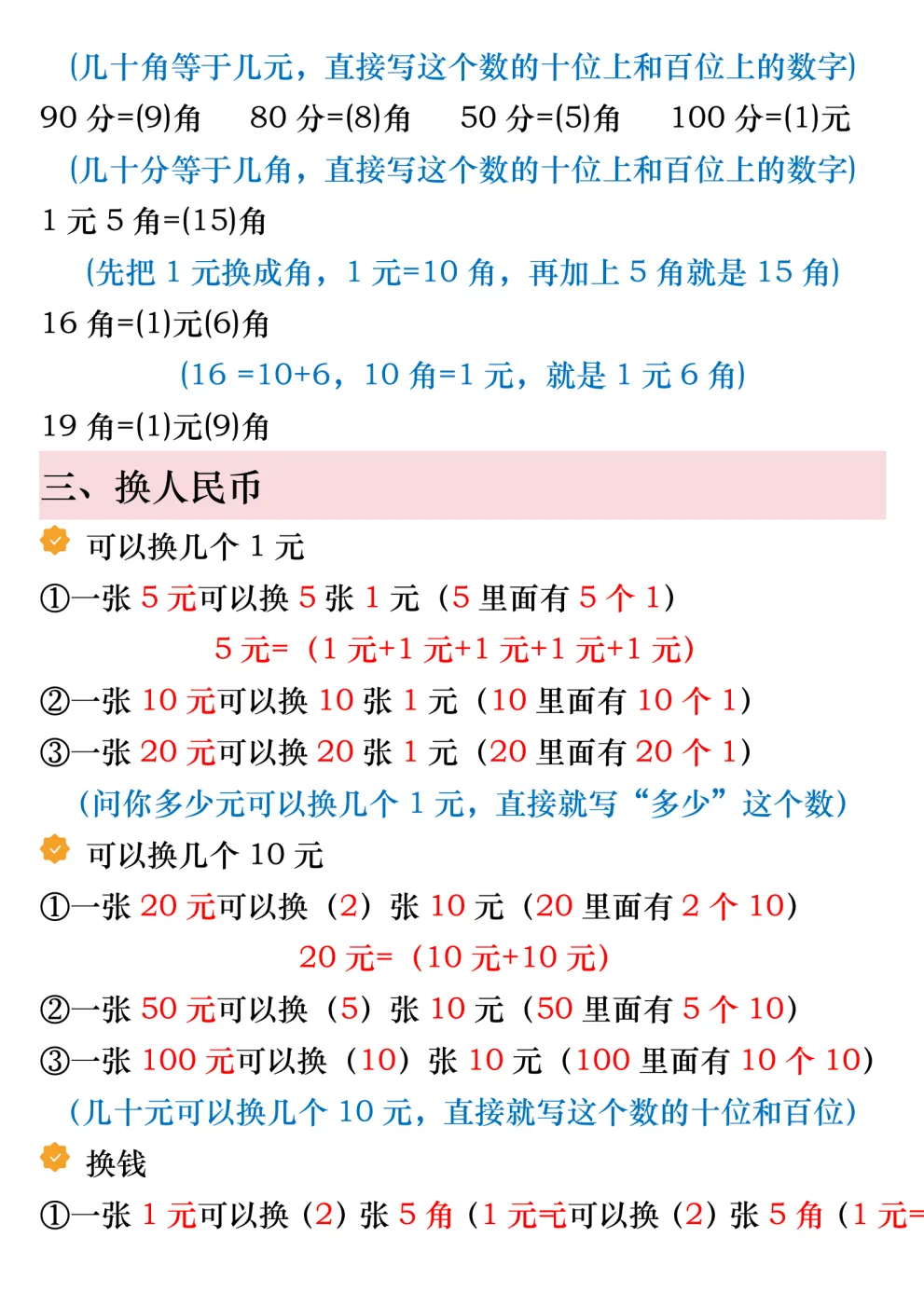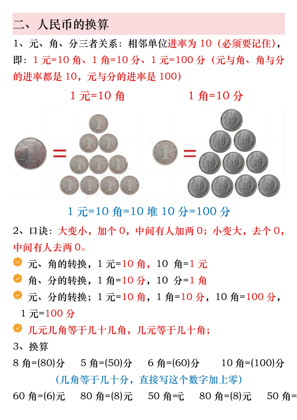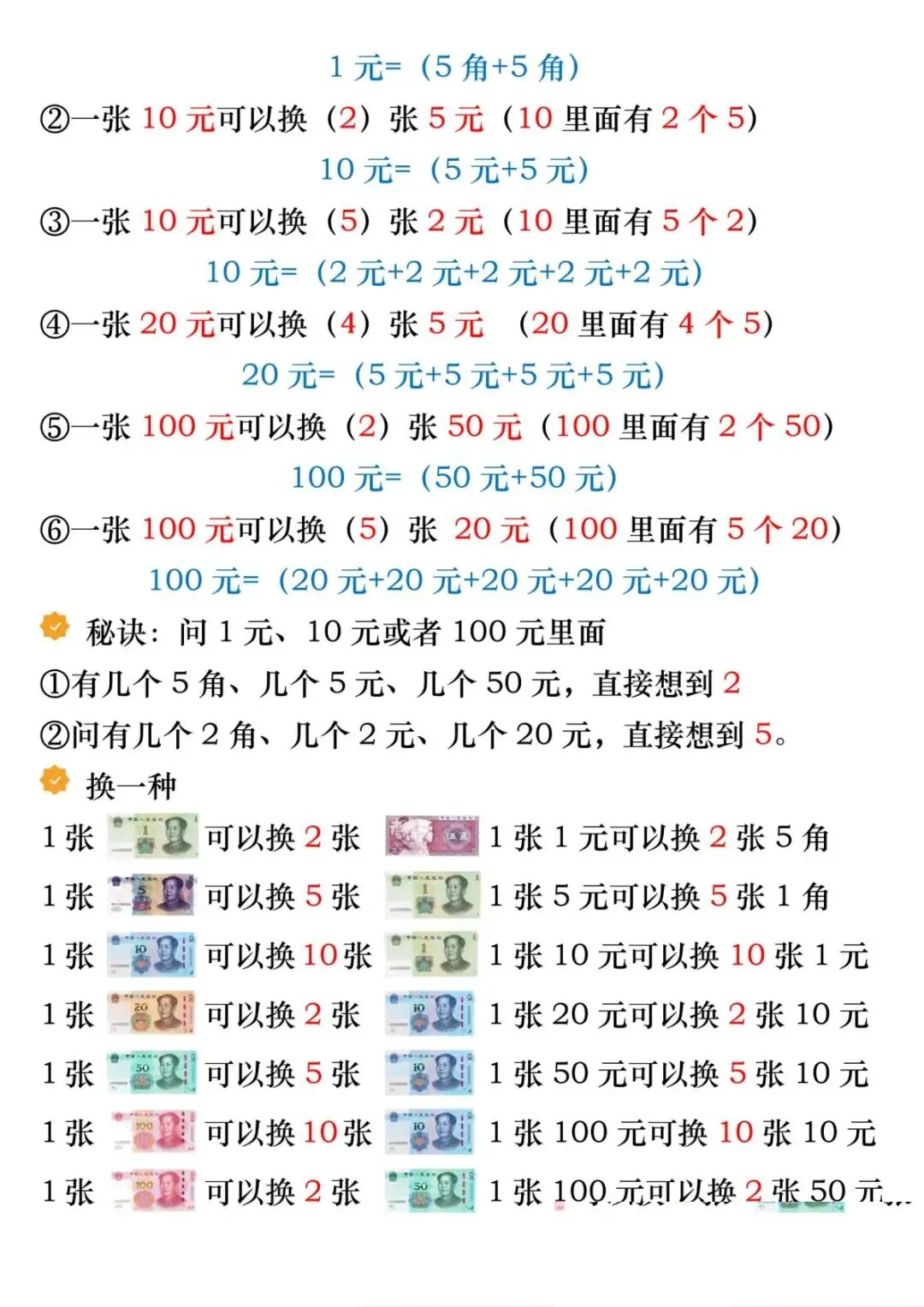 今天给大家带来的是2026春一年级下册数学《人民币必考知识点汇总》 含精讲及专项练习 电子版可下载打印,免费分享给大家!