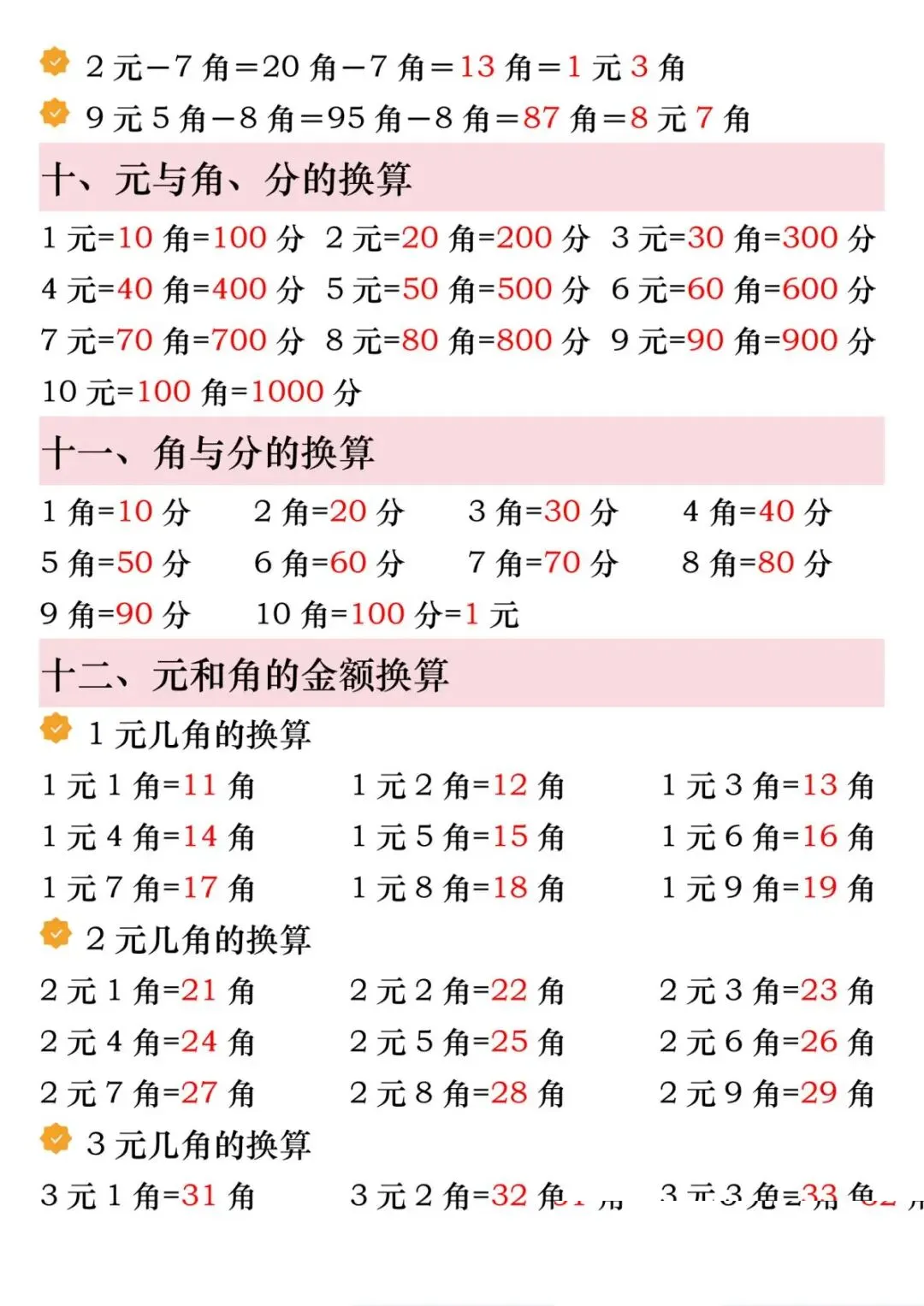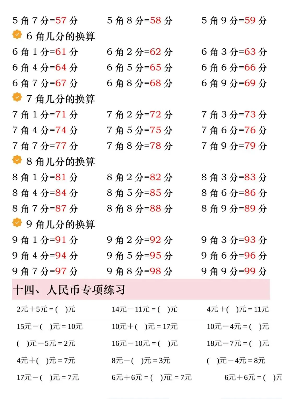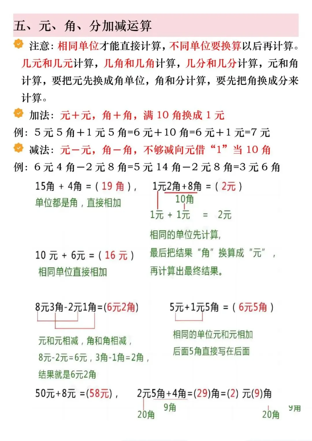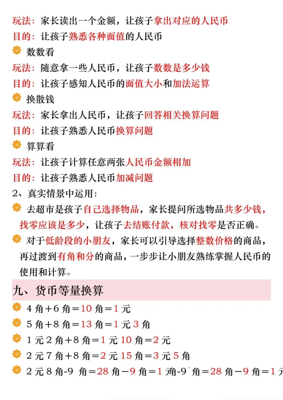 1份电子版汇总!一年级下册数学人民币6大必考知识点,精讲+练习全包含