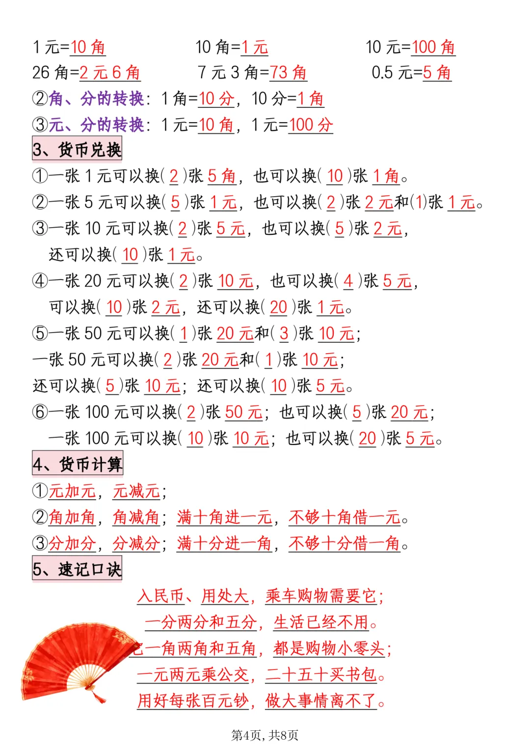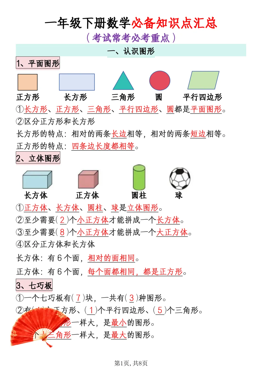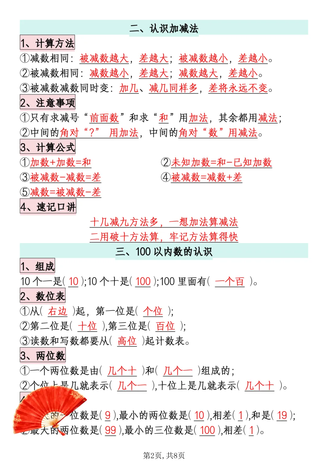 26春《一年级下册数学必背知识点汇总》电子PDF文档共8页,公益分享,即拿即用,可直接打印。